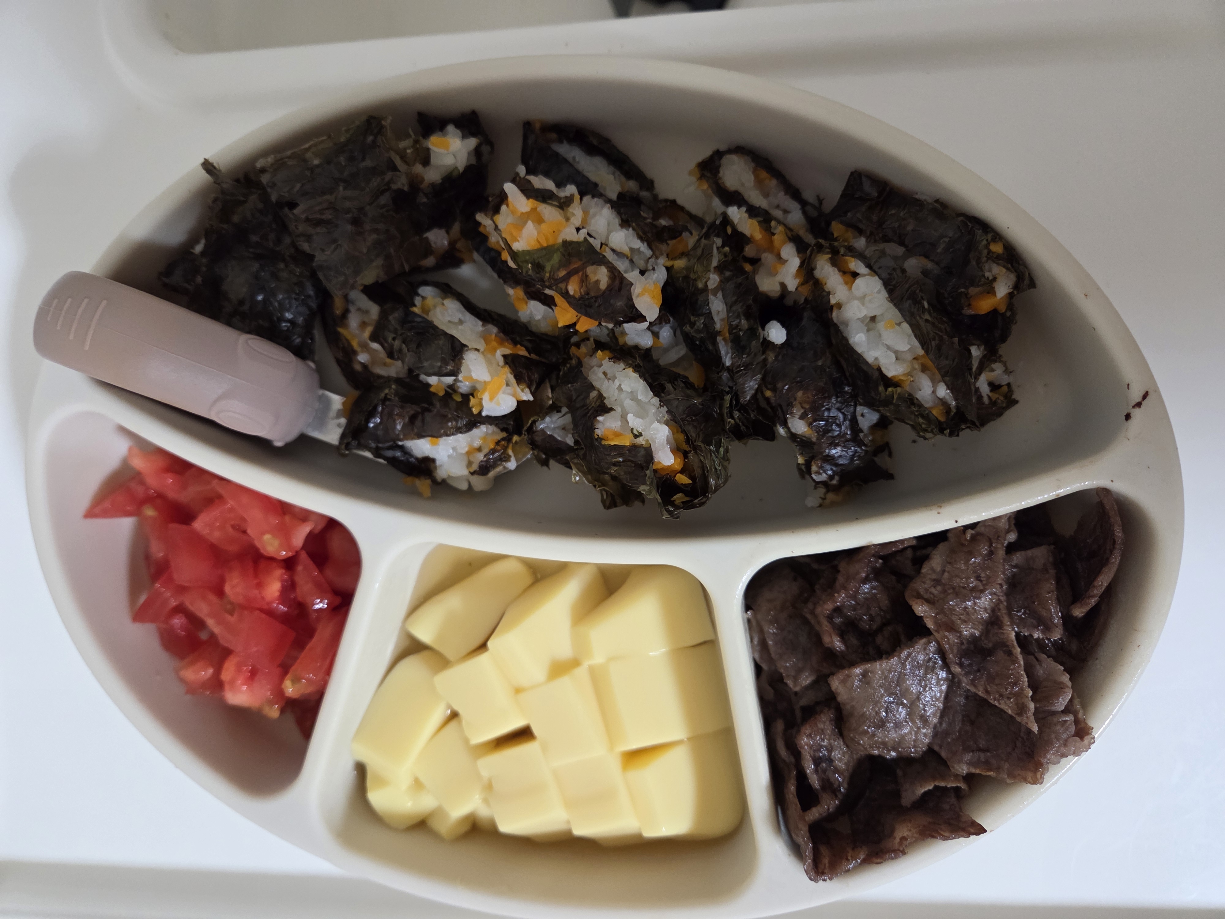 다섯번째 사진은 당근을 아주아주 작게 다지고 푹 익혀서 김밥 속에 넣어봤는데 이것도 안먹어줬다ㅠㅠ