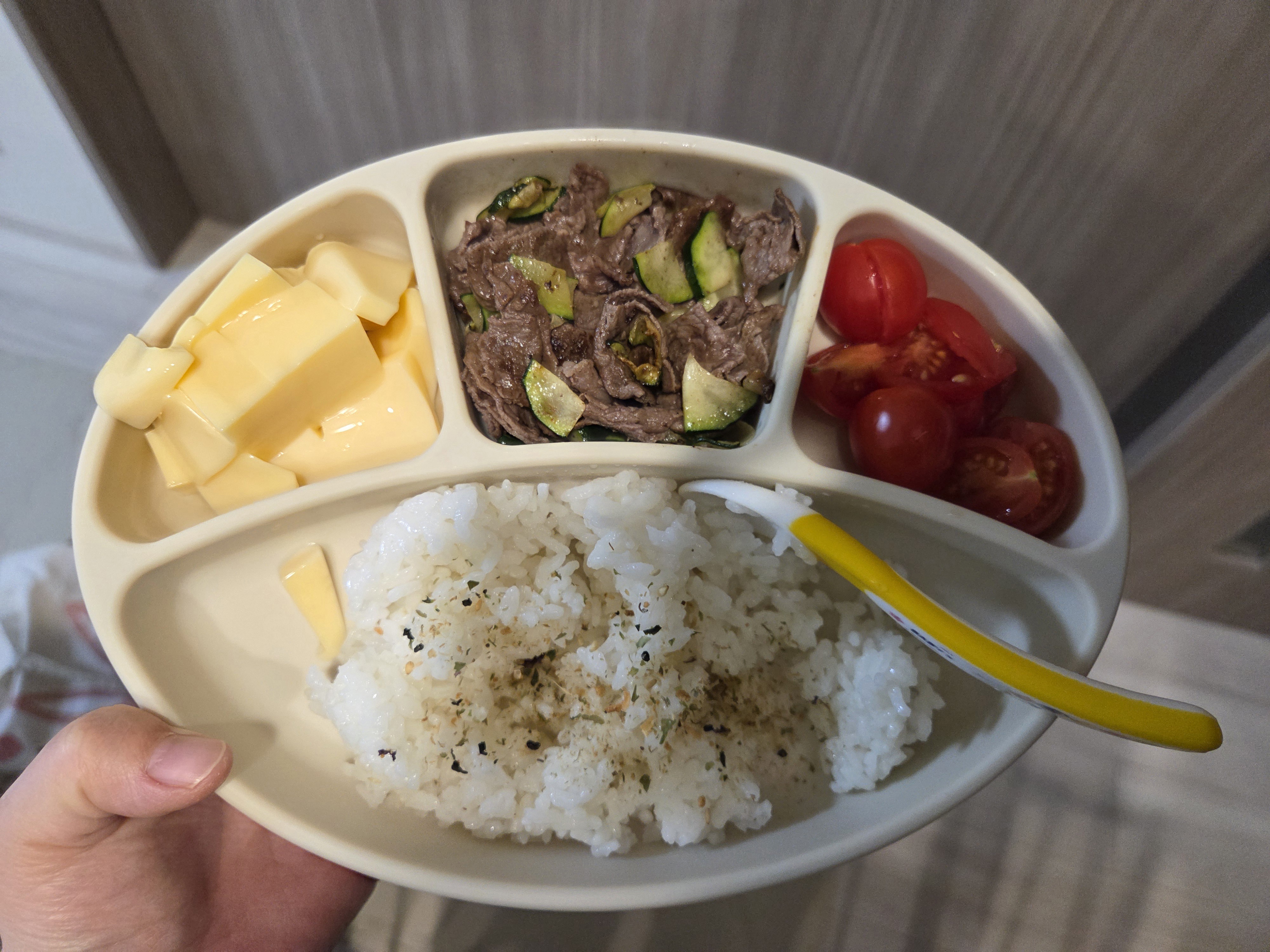 소고기랑 애호박(즛키니) 구워줬는데 애호박은 쏙 빼고 먹고
