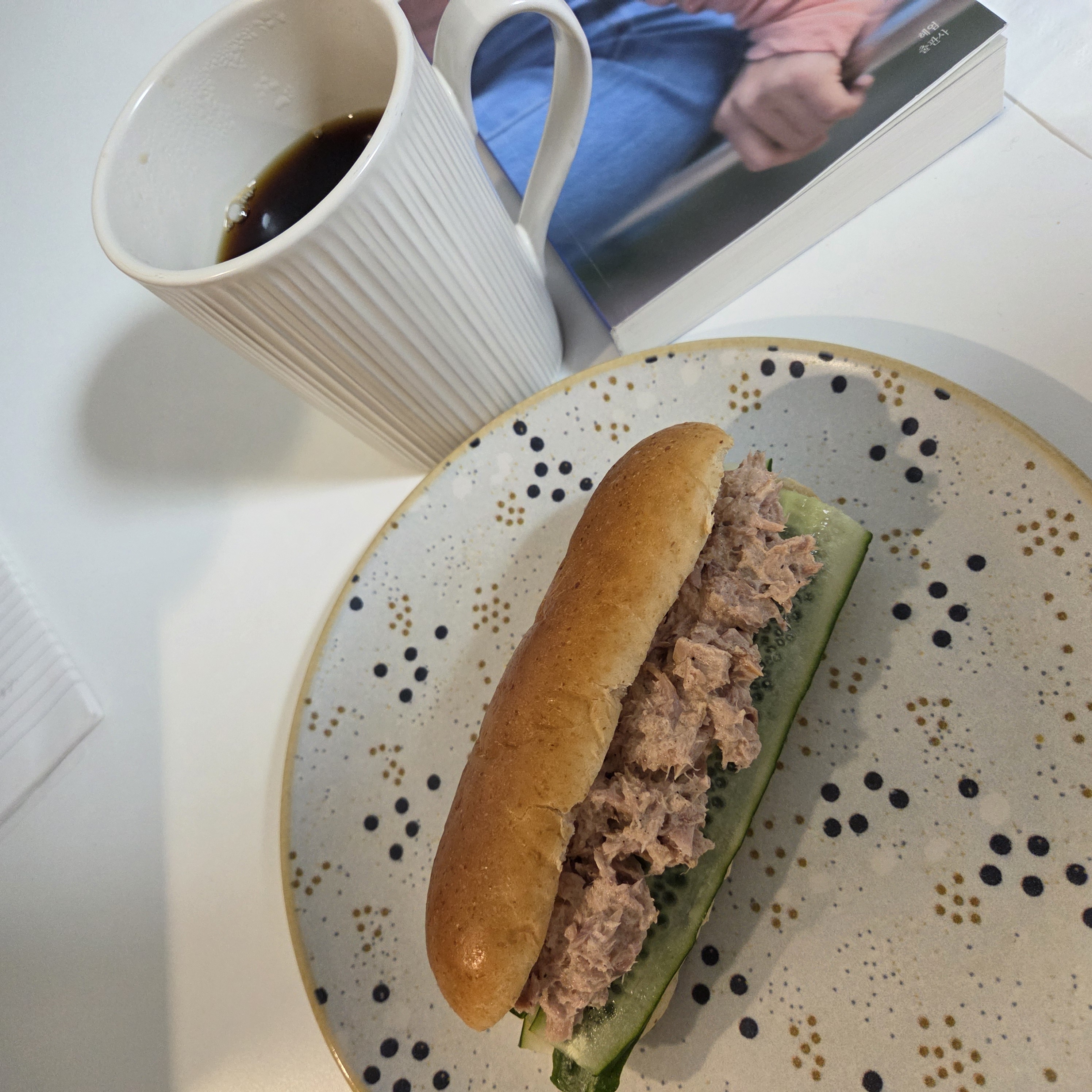 나도 얇은 오이를 넣은 참치 샌드위치를 아침으로 먹었다