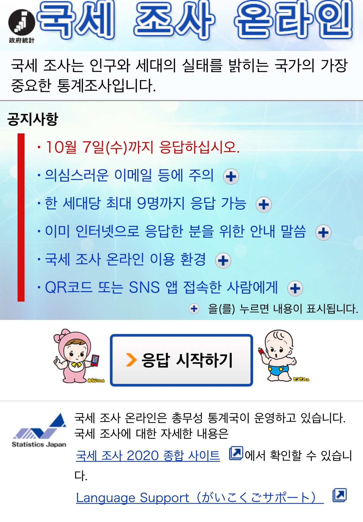 조사표가 동봉되어 있어 이를 체크해서 함께 들어있는 봉투에 넣어 보내면 된다고 하는데, 인터넷으로도 가능하다고 하길래 나는 인터넷으로 했다. 인터넷으로 하면 외국어 지원 기능이 있어 더 쉽게 할 수 있고 우체통에 우편도 안넣어도 되니까 편리할 것 같았다.