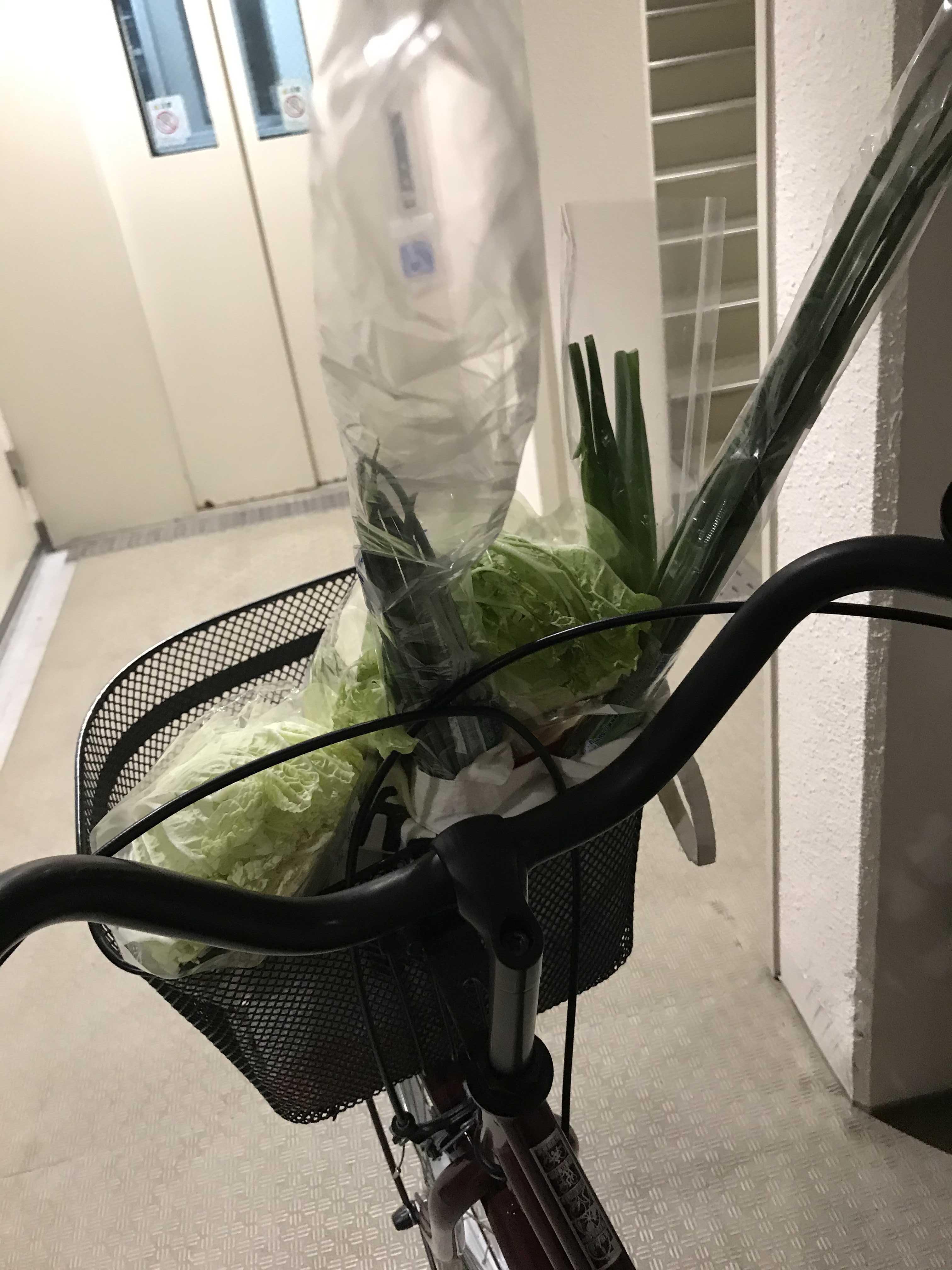 초록 초록한 자전거 바구니. 배추 한포기와 쪽파, 어떻게보면 정말 간단한 재료고, 만드는 것도 귀찮아서 그렇지 어려운 건 아니라 자꾸 포기하지 못하고 도전하는 겉절이 만들기.