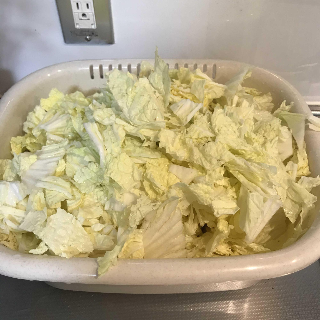 5. 배추를 물에 한번 씻어주고, 물기를 빼준다.