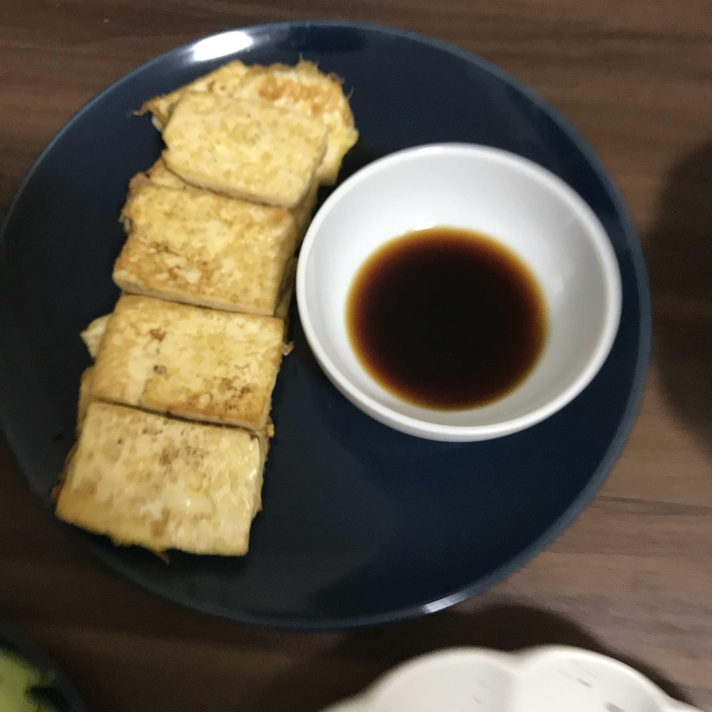 일본 슈퍼에 가면 단단한 두부 もめん 가 있는데 이게 한국 두부랑 비슷하다. 두부를 계란 옷에 입혀 간장과 참기름을 넣은 양념장에 콕 찍어 먹는데, 맛도 고소하고 간단한데도 한국에서 먹던 반찬 맛이 나서 만족스러웠다.