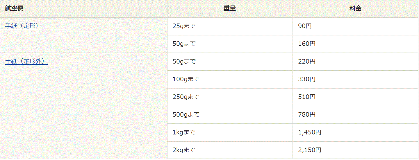 일본 우체국 홈페이지를 참고해보면 편지는 한장당 약 10g 정도이고, 요금은 위와 같다. 편지를 써서 봉투에 담아 우체국에 가서 창구에서 국제 우편을 보내고 싶다고 말하면 알아서 무게를 재서 금액을 알려준다.