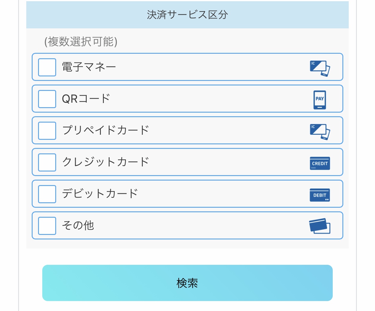 결제 서비스는 전자머니, QR코드, 여러종류의 카드 등 다양하게 있으니, 원하는 걸로 선택해서 진행하면 된다. 나는 페이페이를 선택하려고 전자머니를 선택해서 진행했다.
