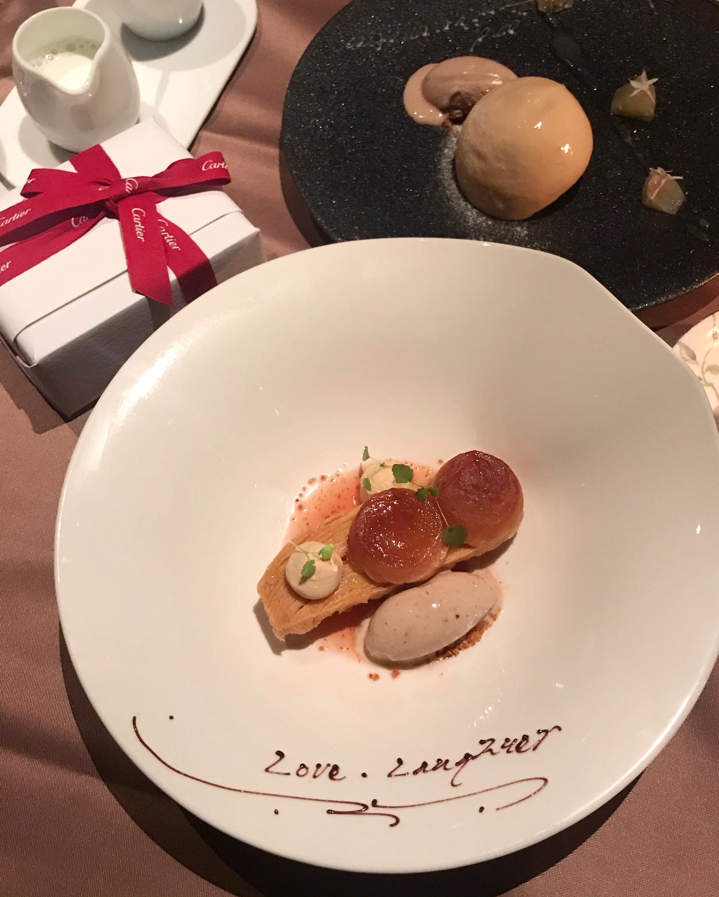 프로포즈의 하이라이트. 디저트 메시지에 Love, aughter and happily ever after 라고 써달라고 부탁드렸는데, 뒷 부분이 흰색 초콜릿이라 잘 안보여서 아쉽지만 정말 깊은 뜻이다. 사랑하고 웃으며 평생 오랫동안 행복하게 산다는 동화 속 멘트.