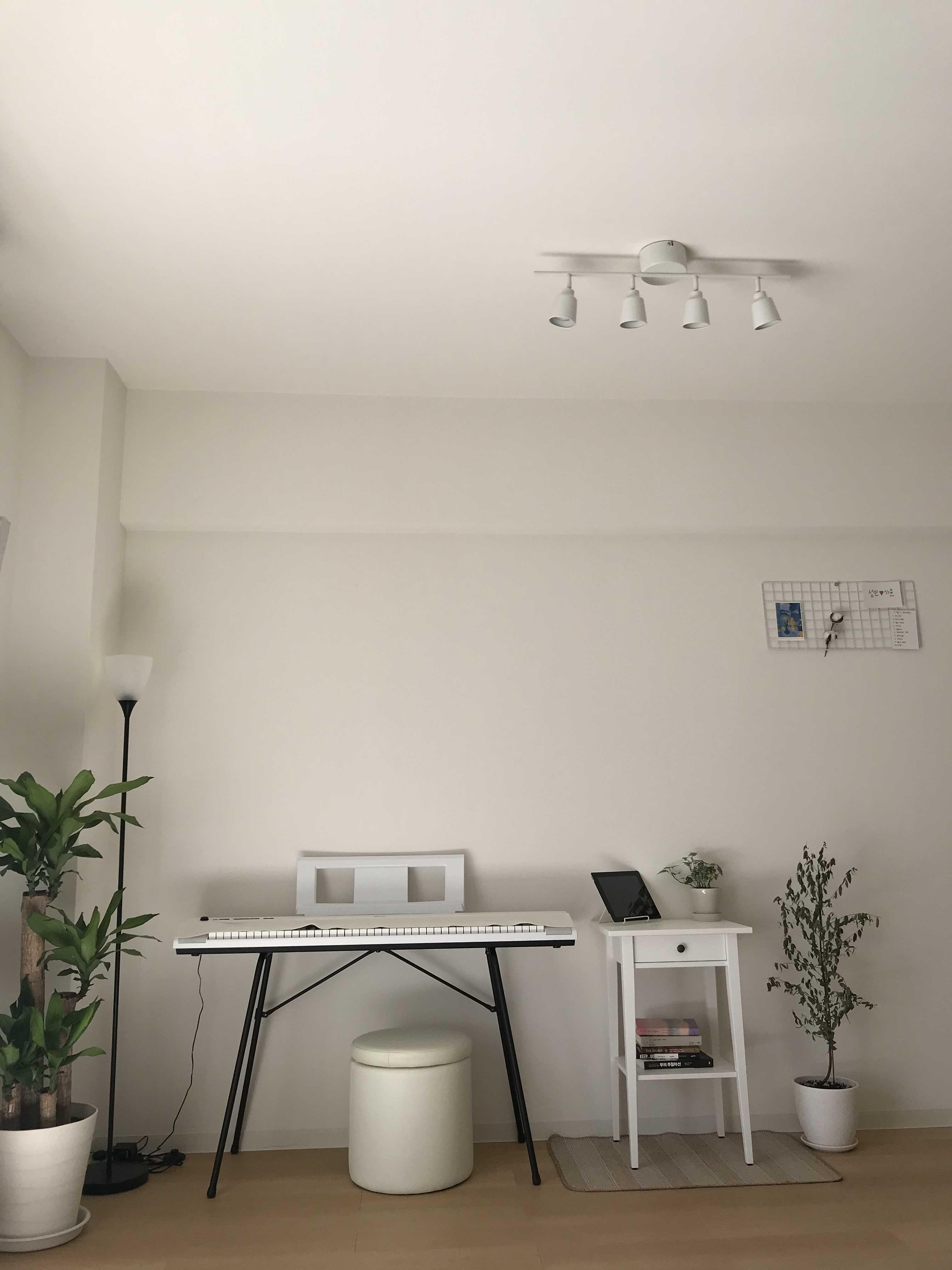 우선 피아노를 취미로 배우고 있어서 전자피아노를 뒀고, 전체적인 컬러를 화이트로 맞추려고 전자피아노도 화이트로 구매했다. 야마하 제품으로 잘 기억은 안나지만 약 7만엔 정도. 피아노 의자는 니토리에서 안에 수납이 가능한 화이트 컬러의 의자를 따로 구매해서 사용중이다. 실용성도 컬러감도 좋다.