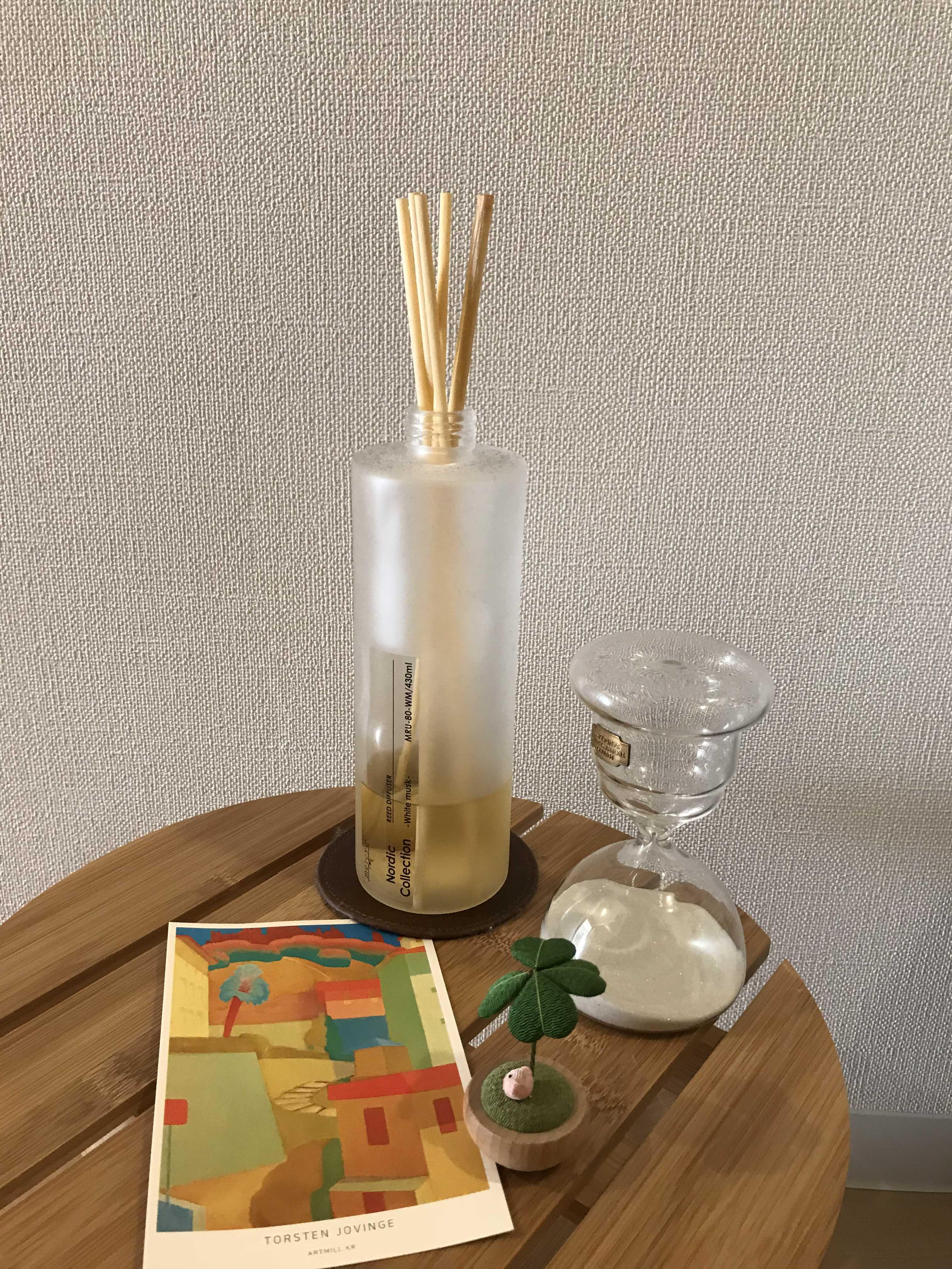 작은 탁자는 온라인부터 오프라인까지 엄청 뒤졌었는데, 결국 맘에 쏙 드는 걸 못찾다가 다른 걸 사러 이케아 갔을 때 발견하고 구매했다. 디퓨저는 원래 있던 것. 현관에는 큰 사이즈의 디퓨저를 선호하는데 은근히 판매하는 데가 없어서 디퓨저도 한참 찾아보다가 프랑프랑에서 맘에 드는 향이 있어서 구매했다.
