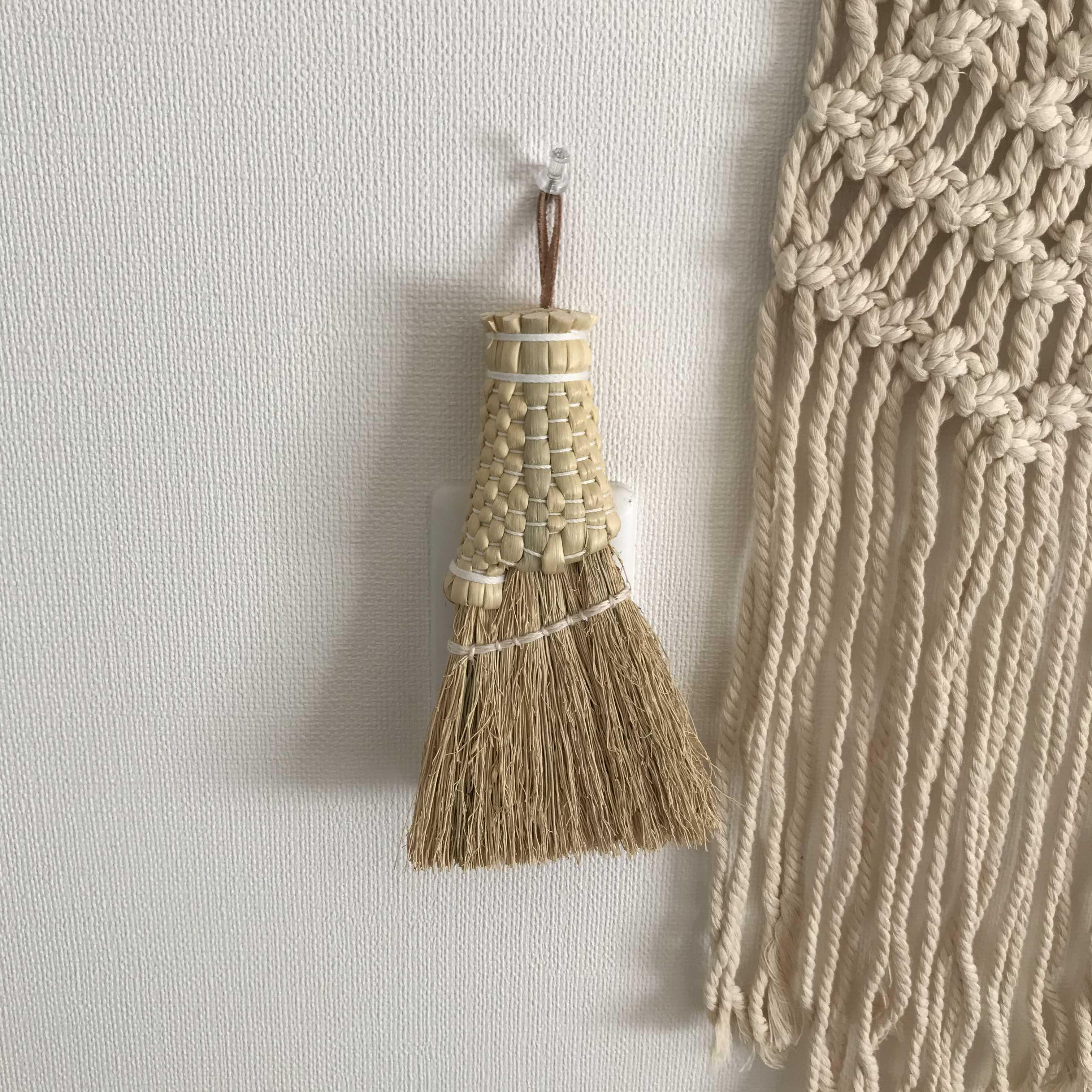 거실 소품들에는 정말 애정이 가득하다. 이 작은 싸리빗자루는 모토마치의 바루에서 지나가다가 보자마자 이건 무조건 사야 한다며 데려온 아이로, 1천엔 정도 했다. 일단 데려오긴 했는데 어디에 둘까 하던 걸 콘센트 가리는 용도로 꼬꼬삔을 꽂아서 걸어두었다. 떨어지면 어쩌지 걱정했는데 지금까지 한번도 떨어진 적이 없다.
