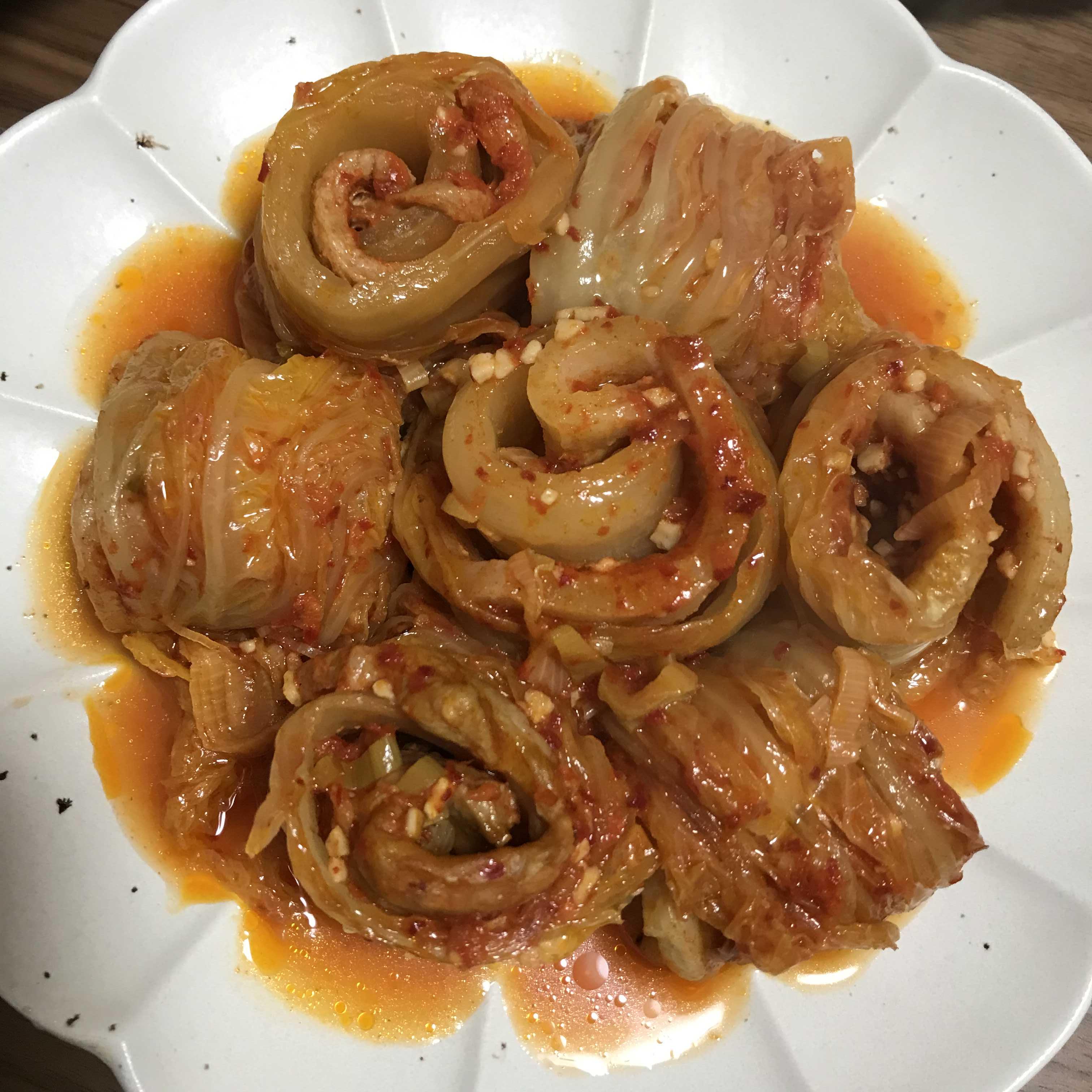 평소에 김치말이찜을 만들때는 돼지고기 등심을 사용했는데 삼겹살을 이용하니 등심보다는 살짝 돼지고기 냄새가 났다. 흠... 따로 후추나 맛살을 넣지 않아서 그런가 !?