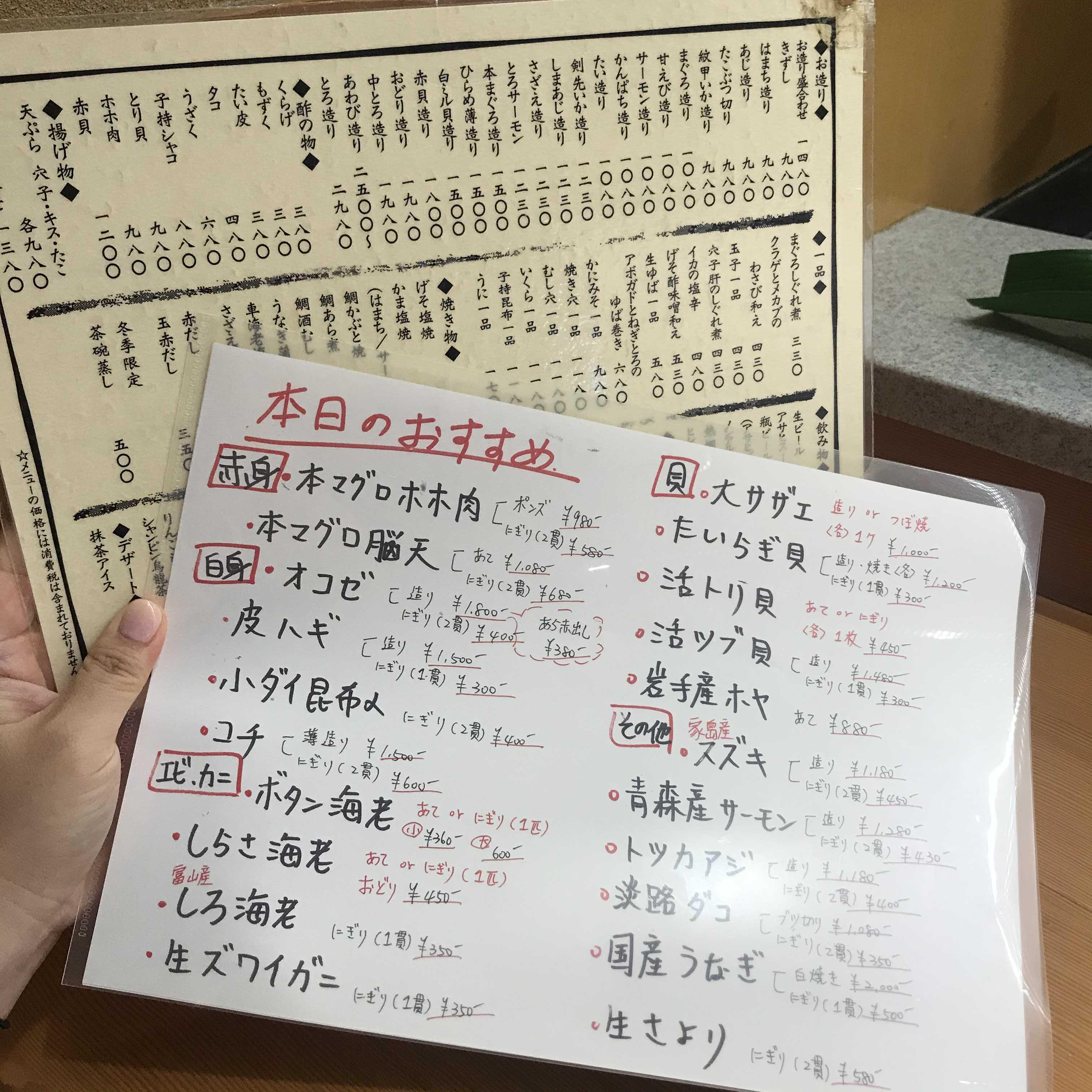 두번째 손님이기 때문에 오픈하고 바로 가게에 들어와 자리를 안내 받을 수 있었다. 그날 그날 신선한 스시 재료들을 사용한 초밥 메뉴들이 다르기 때문에 런치 메뉴도 그렇고 그날 추천하는 초밥도 매번 다르다.