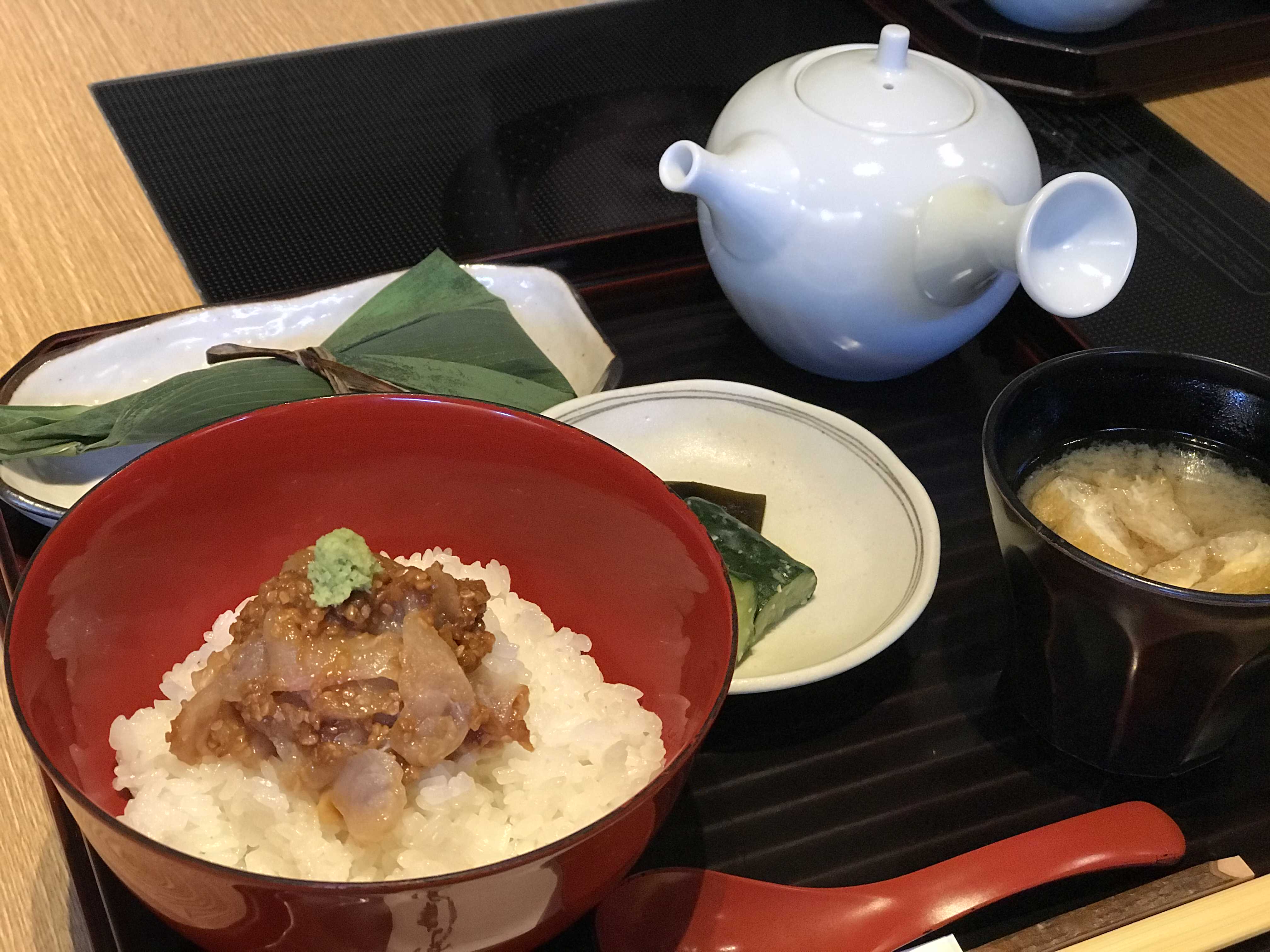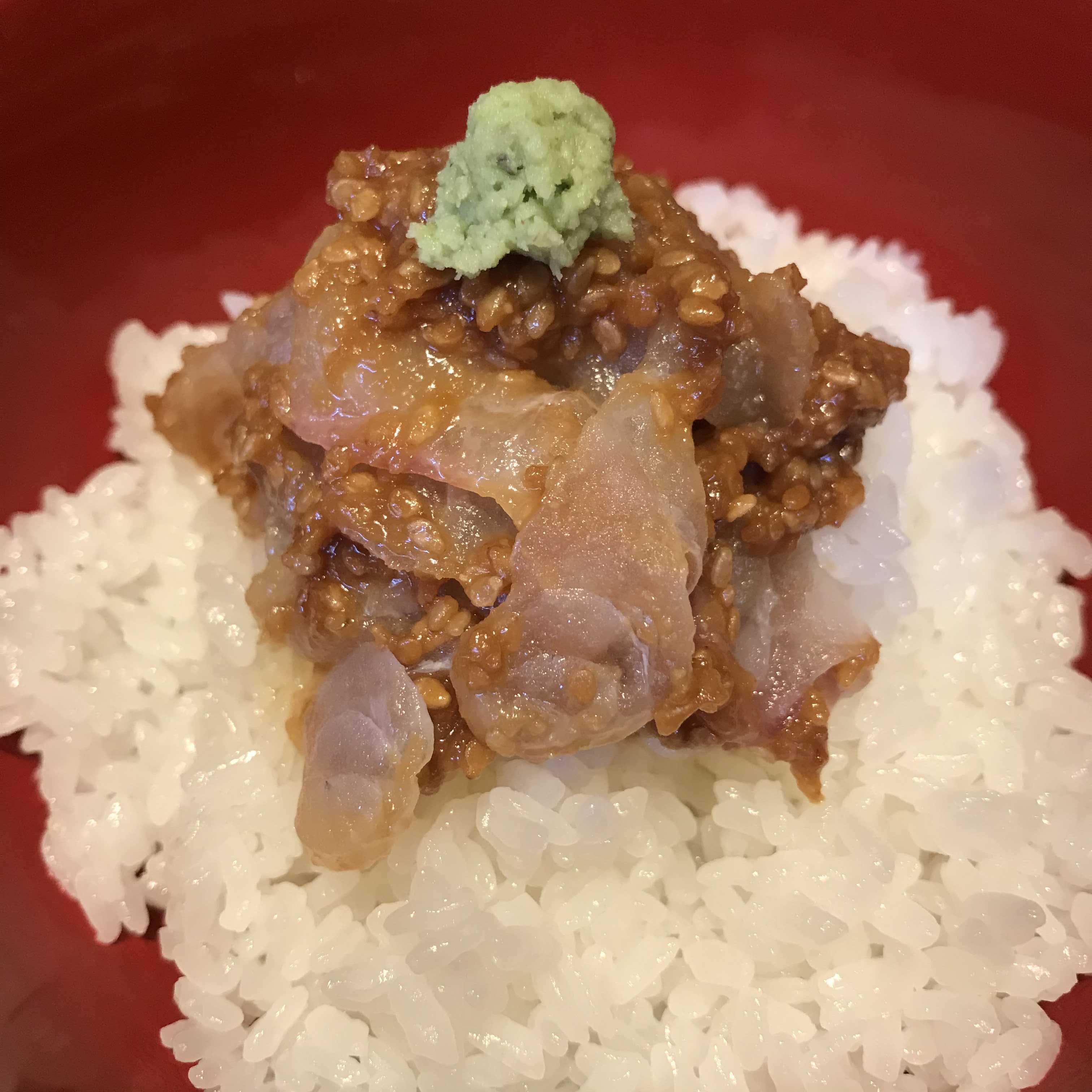 나는 2,000엔 대의 하시타테 세트를 주문했는데, 메뉴판을 봐도 어떤 메뉴를 시켜야할 지 잘 모르겠길래 그냥 가게 이름이 들어가 메뉴를 주문했다. 도미의 참깨 된장 덮밥 鯛のごまみそ丼이 주된 메뉴인데, 고소하면서 짠 맛도 강하지 않고 굉장히 맛있었다.