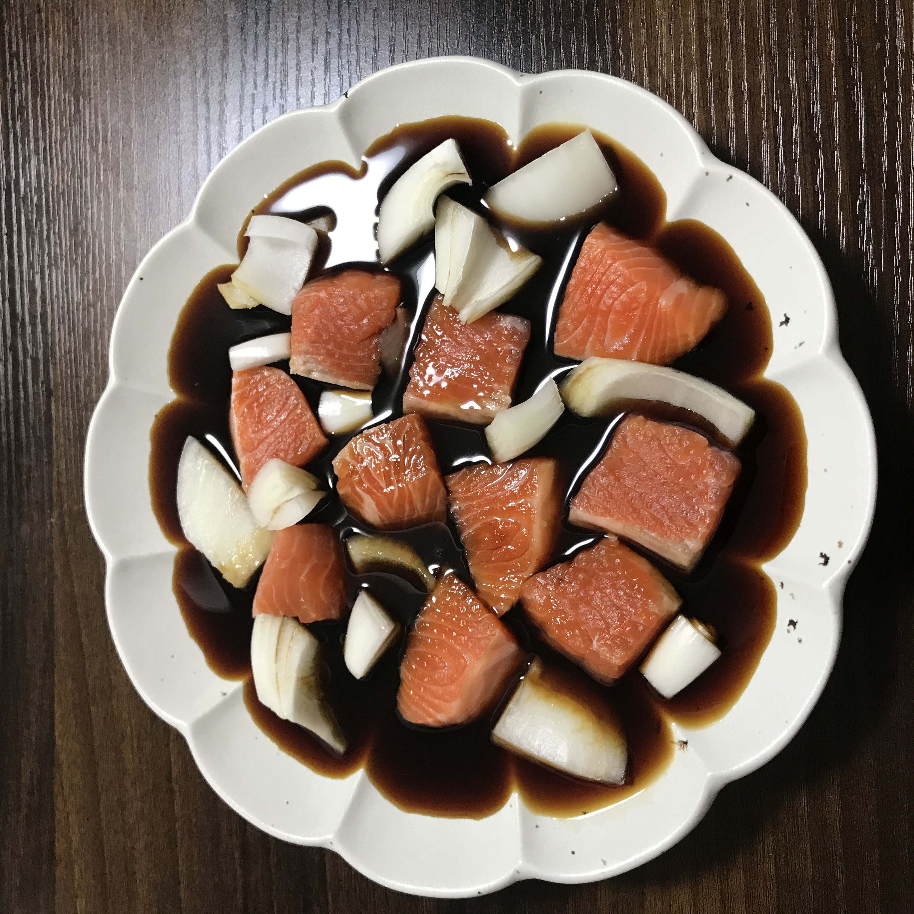 먹어본 적이 없는 음식이라 어떤 맛일까 기대하고 먹어보니 WOW 대 만족! 진짜 맛있었다. 너무 짜지도 않고 짭짤하면서도 상큼한 맛이 연어와 어우러져 밥반찬으로 굉장히 좋았다. 게다가 숙성된 연어의 식감과 아삭한 양파의 식감이 조화로웠다.