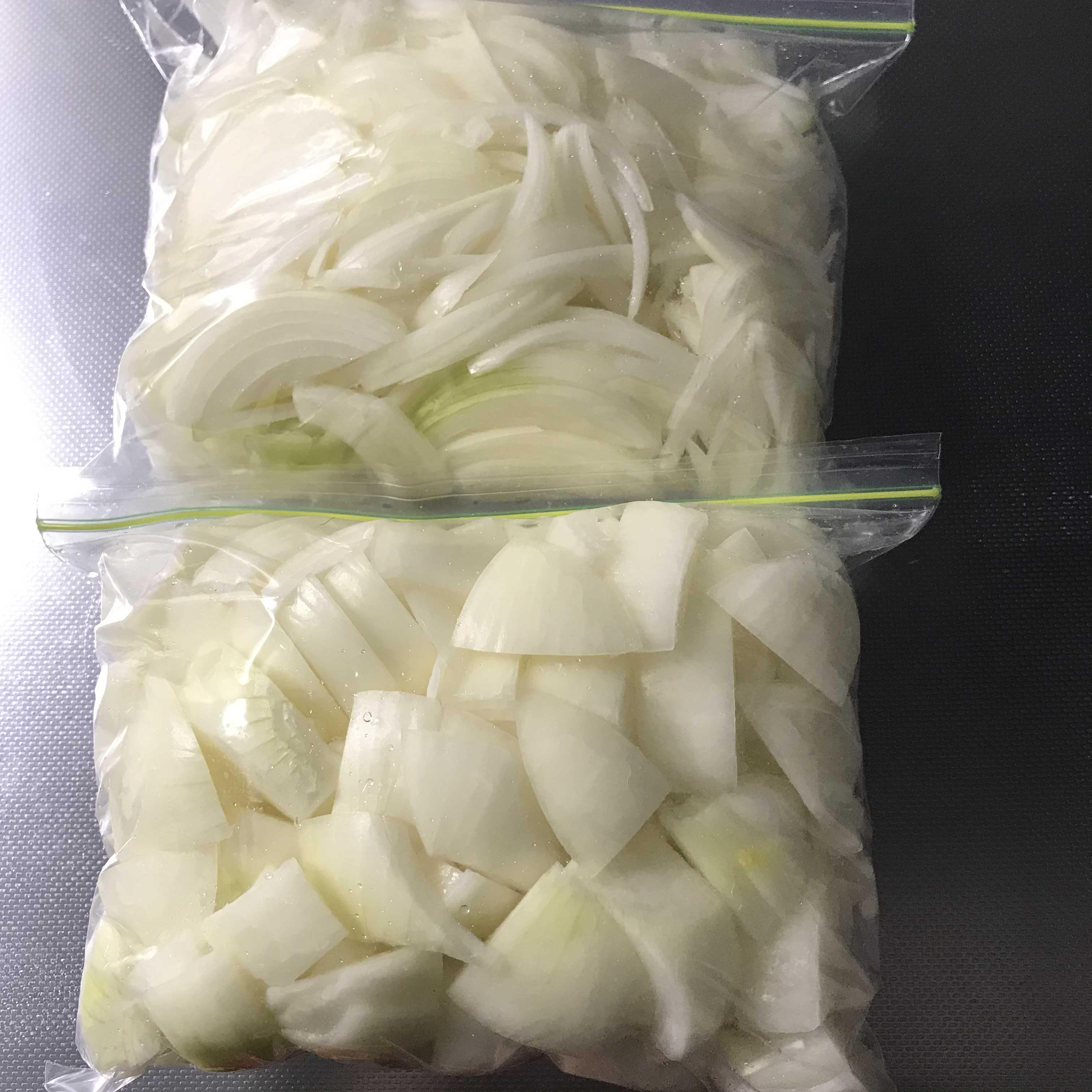 망 안에 양파 한개는 물러 있어서 버려야 했는데, 일본에서도 상술은 있구나 싶었다. 눈물을 흘리며 양파를 열심히 다듬고 반은 사각크기로 반은 채썰기로 잘라서 지퍼백 두개로 보관해놓았다.