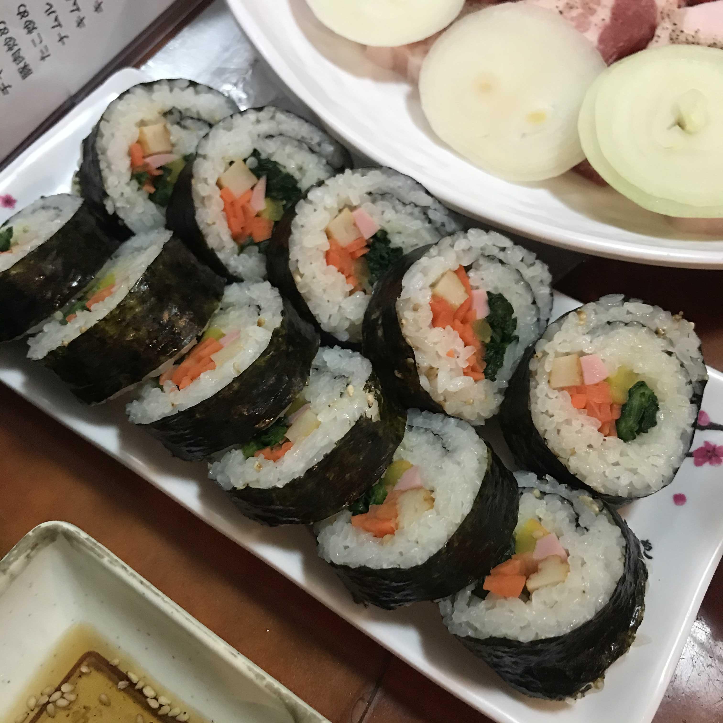 김밥이 한 600엔 정도였나? 기억이 잘 안나는데 하나 시켜서 친구와 나눠 먹었다. 고기집가서 타베호다이 먹은 것만큼 배가 불렀다. 둘이서 고기에 술도 마셨는데 한사람당 2500엔 정도 냈으니까 가격대도 적당한 것 같아서 만족스러웠다.