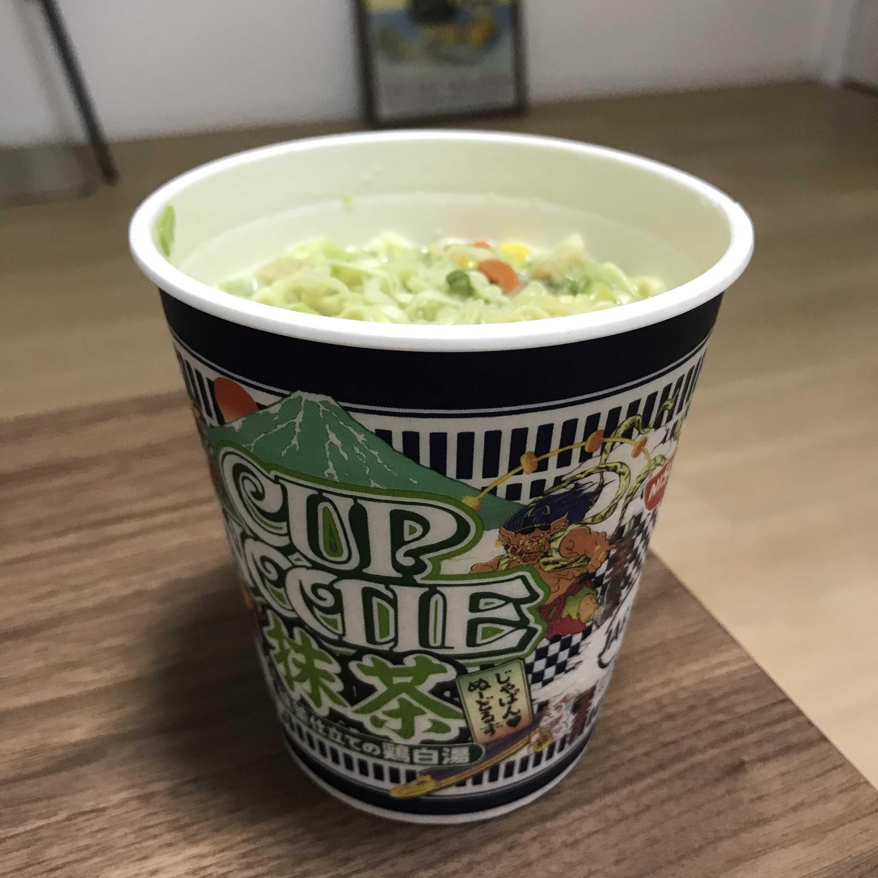 비주얼도 썩 보기 좋지 않은 초록빛이고, 애초에 맛차(녹차) 맛 컵라면이니까 주류 상품은 아니다. 이게 비주얼만 보기 안좋은 게 아니라 냄새도 이상하다.