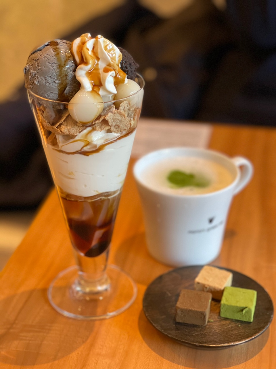 호지차 파르페와 녹차라떼 그리고 생초콜릿을 주문했다.