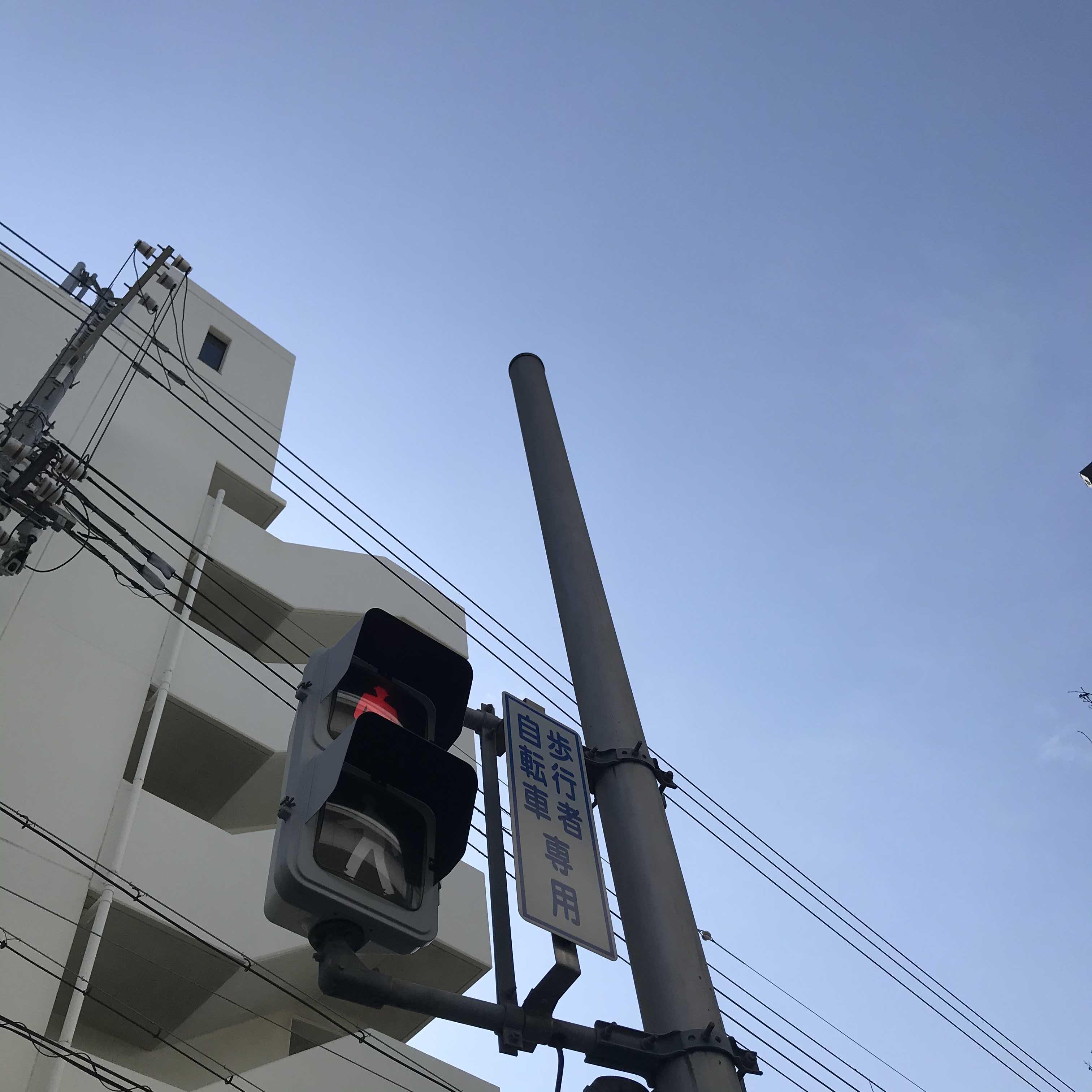 배불리 점심을 먹고 살살 걸어서 카페로 가는 중. 신호등.