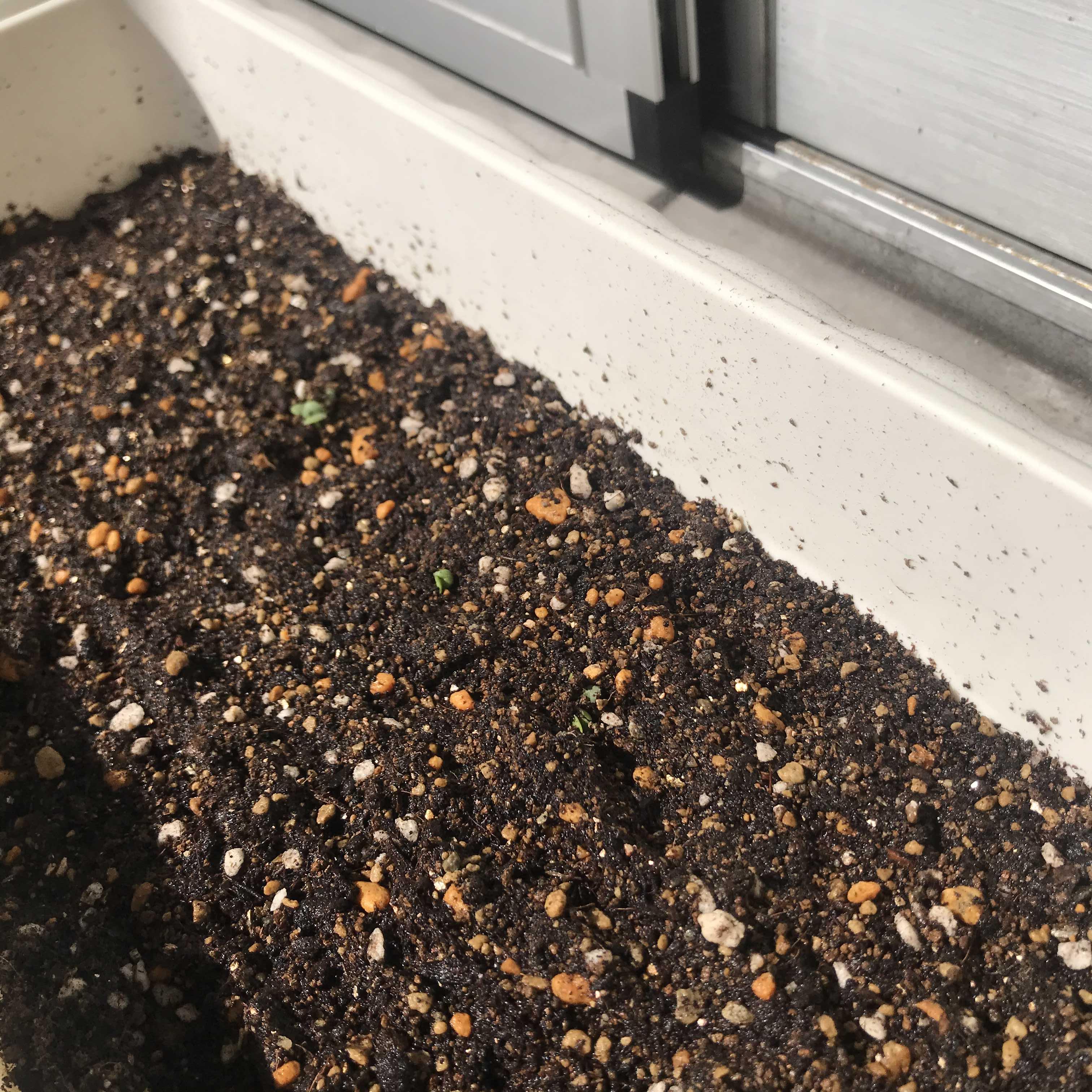 베란다에 심은 지 한달이 지난 깻잎 씨앗에서 새싹이 돋아났다.