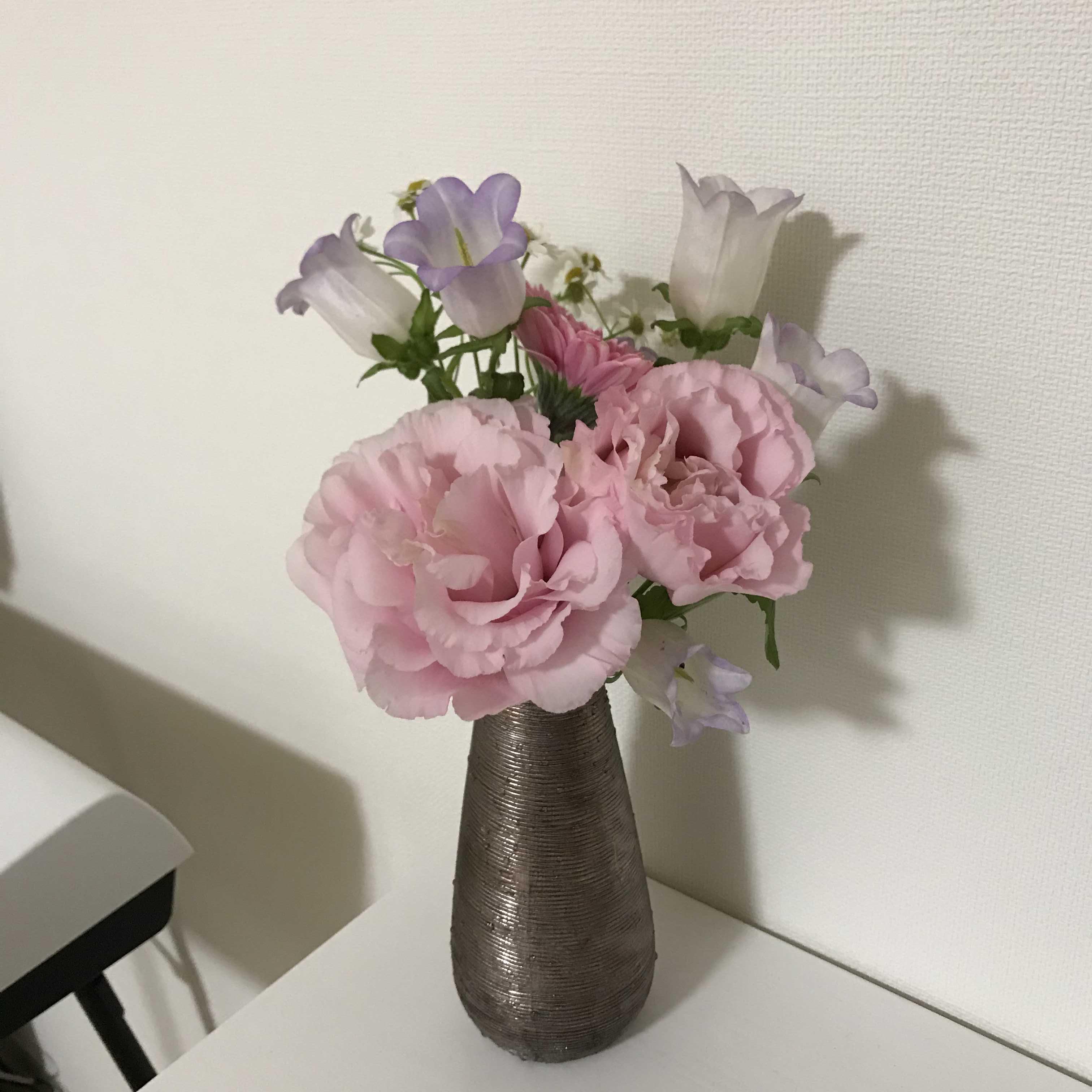꽃은 집에 와서 꽃병에 잘 꽂아 두었다.