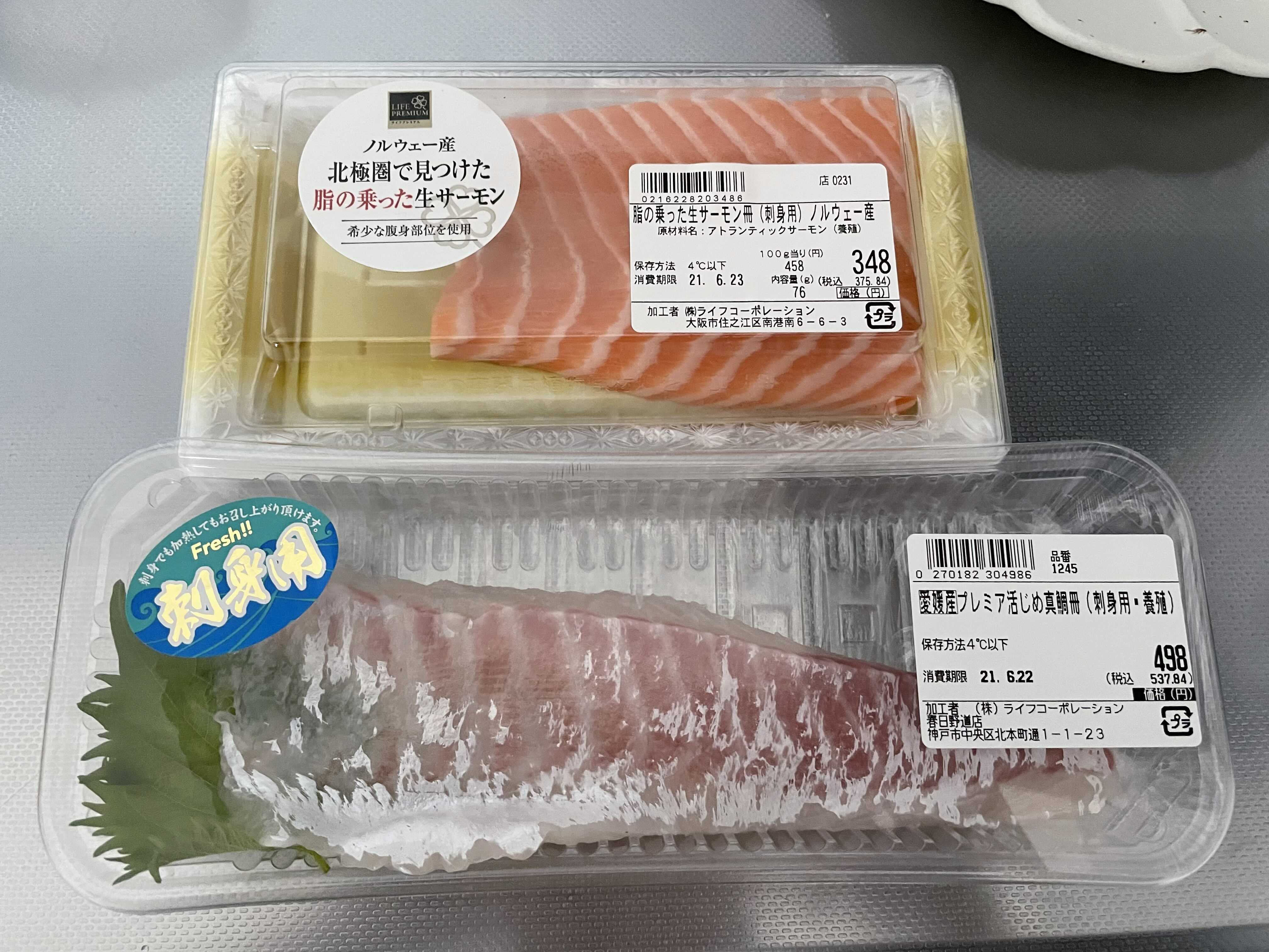 일단 슈퍼에서 흰살 생선과 연어를 사왔다.