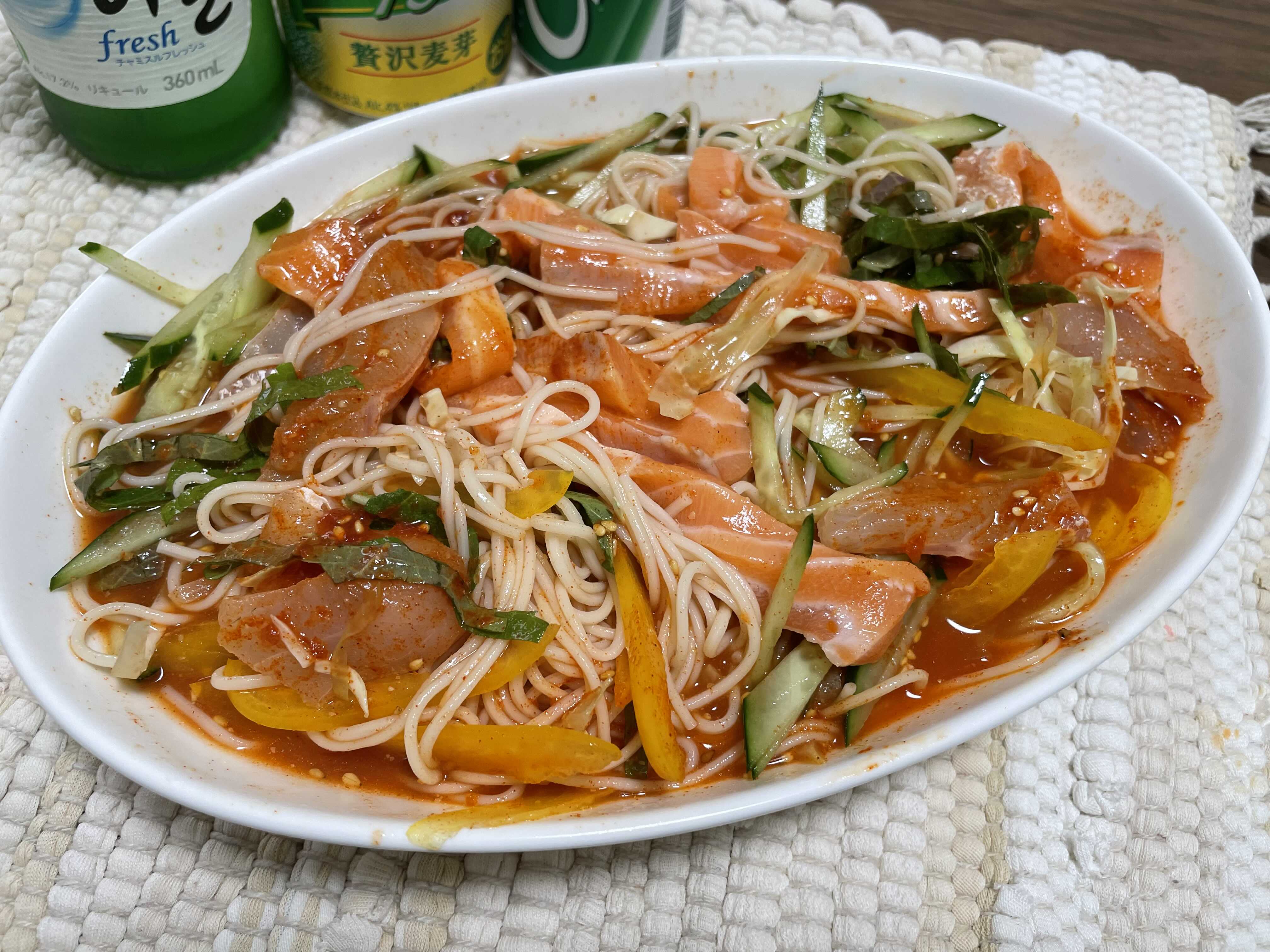 보통 소면은 추가로 넣어먹거나 하는데 나는 식사용으로 만들어서 처음부터 소면을 같이 준비했다.