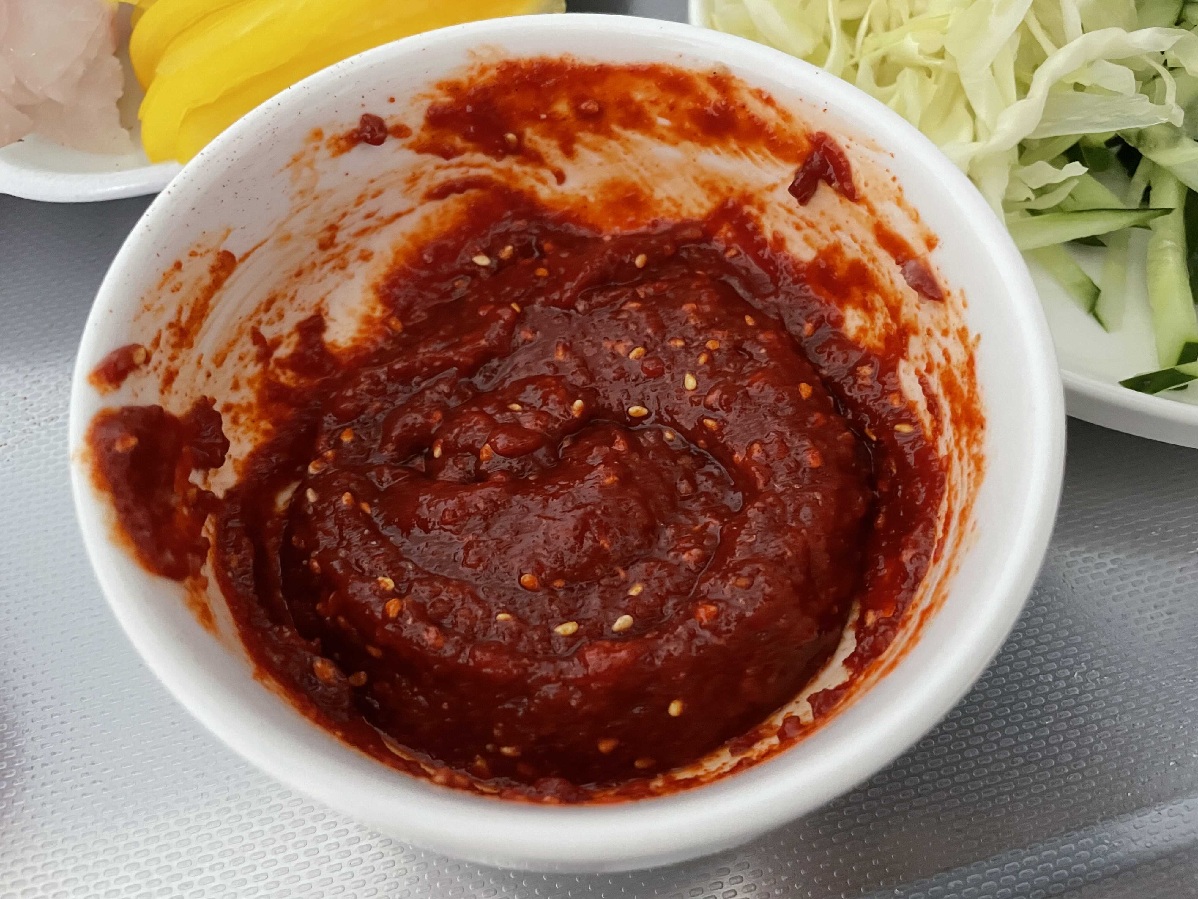 고추장 1큰술, 고추가루 1큰술, 식초 2큰술, 설탕 1큰술, 매실액 1큰술, 다진마늘 반큰술, 통깨 반큰술