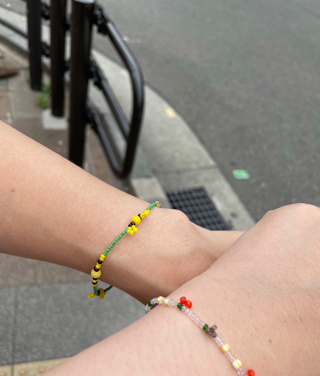 뜬금없이 들어간 단추 같은 걸 많이 파는 가게에서 귀여운 팔지를 샀다.