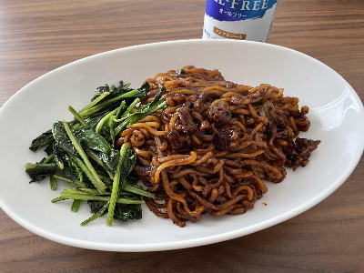 집에 시금치가 있길래 기름에 살짝 볶아서 짜파게티랑 같이 먹었다.