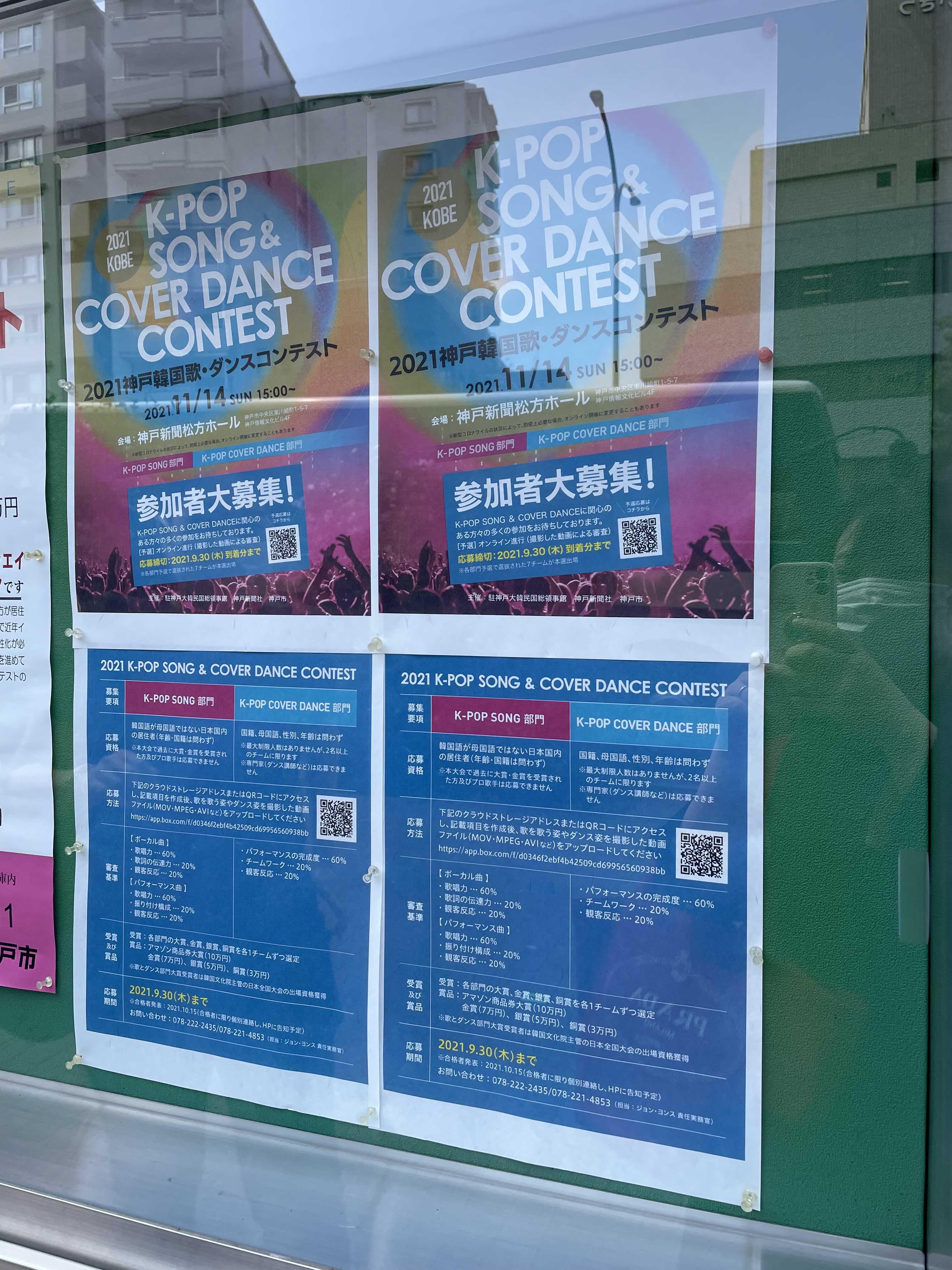 점심 먹고 걷다가 우연히 고베 영사관을 지나는데 게시판에 케이팝 콘테스트 정보가 붙어 있길래 찍었다.