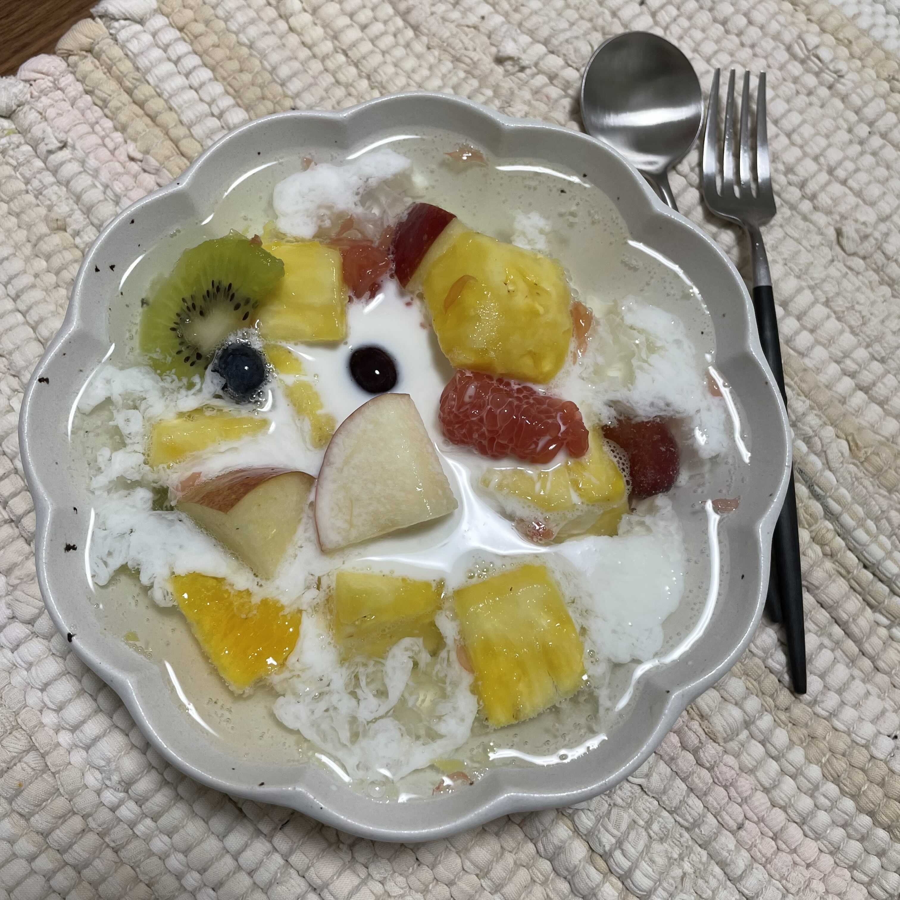 날씨가 더워서 화채를 만들어 먹었다. 믹스 과일을 사와서 스프라이트랑 우유 부어 먹었는데 왜일까? 그냥 저냥 맛이 별로다. 칠성사이다가 아니라서 그런가?