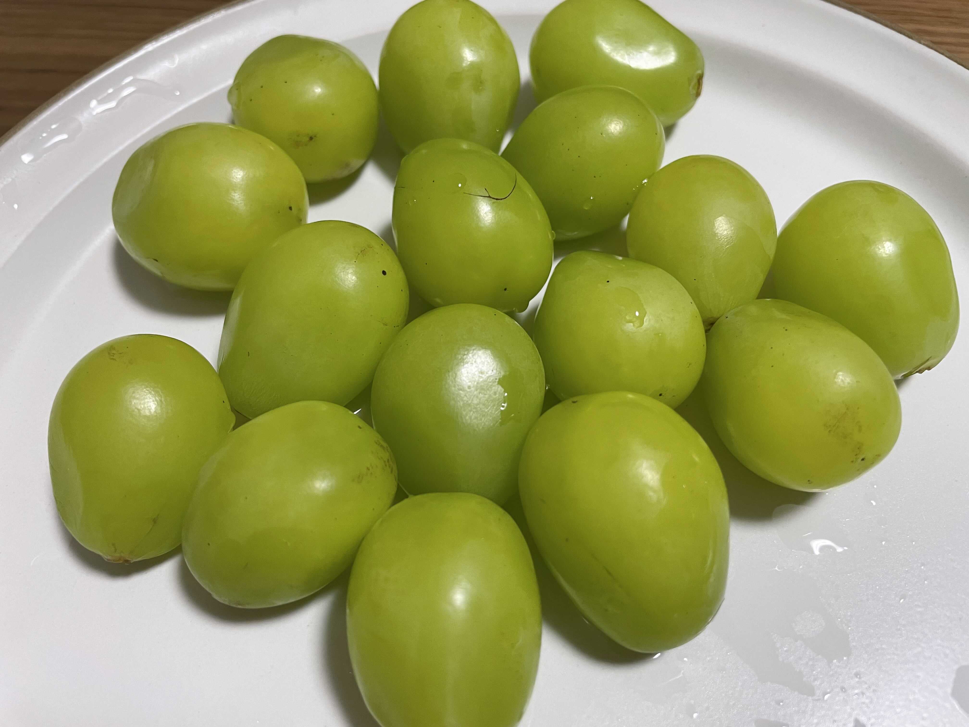 슈퍼에 샤인머스켓 팔길래 처음으로 사 먹어 보았다. 무려 1,500엔이나 하는 가격임에도 아주 작은 양이다...