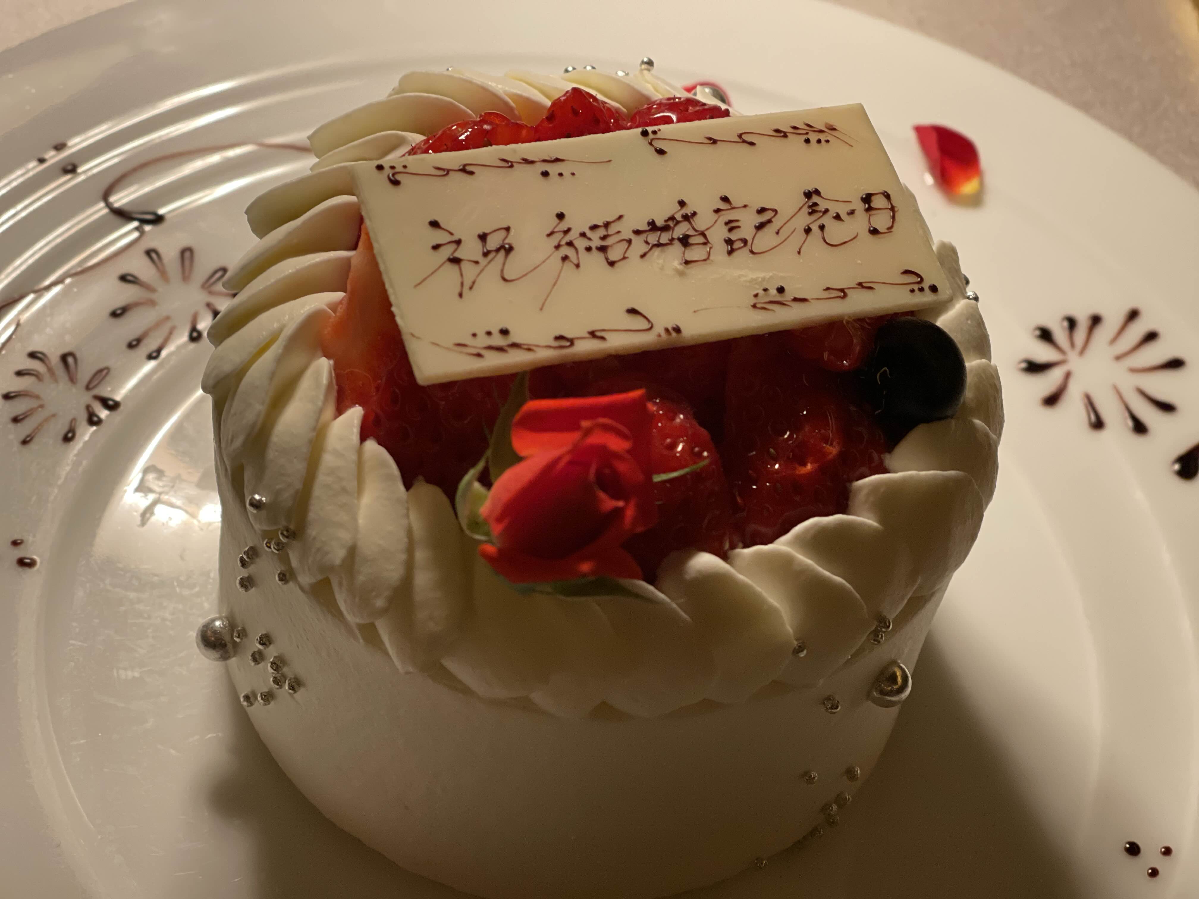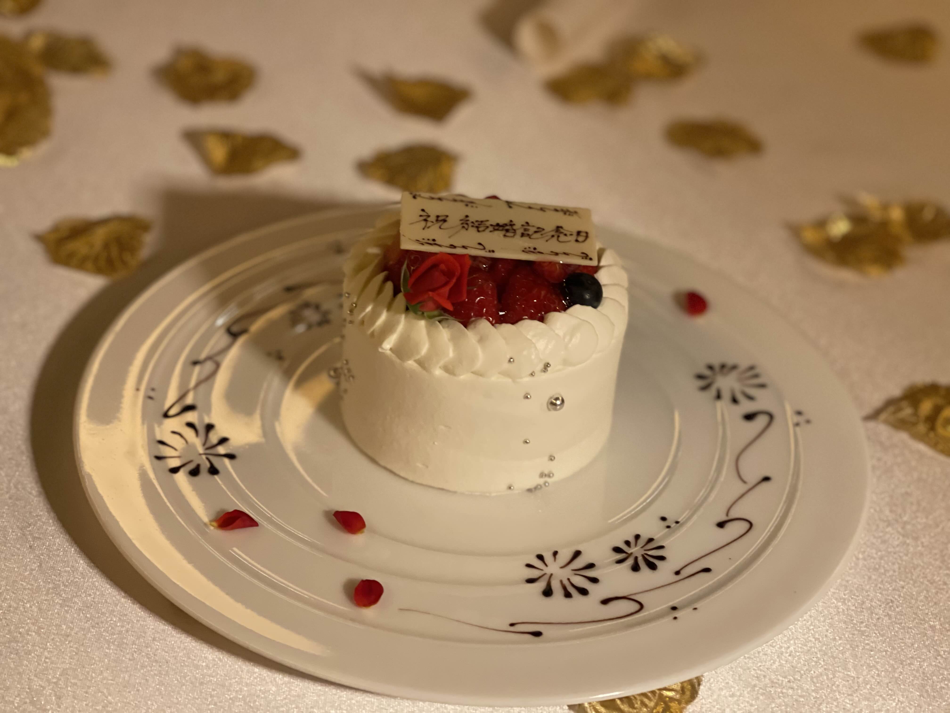마지막에 결혼기념일 축하 케이크를 가져다 주시는데 황금 꽃잎도 뿌려주시고 퍼포먼스가 좋았다ㅋㅋ