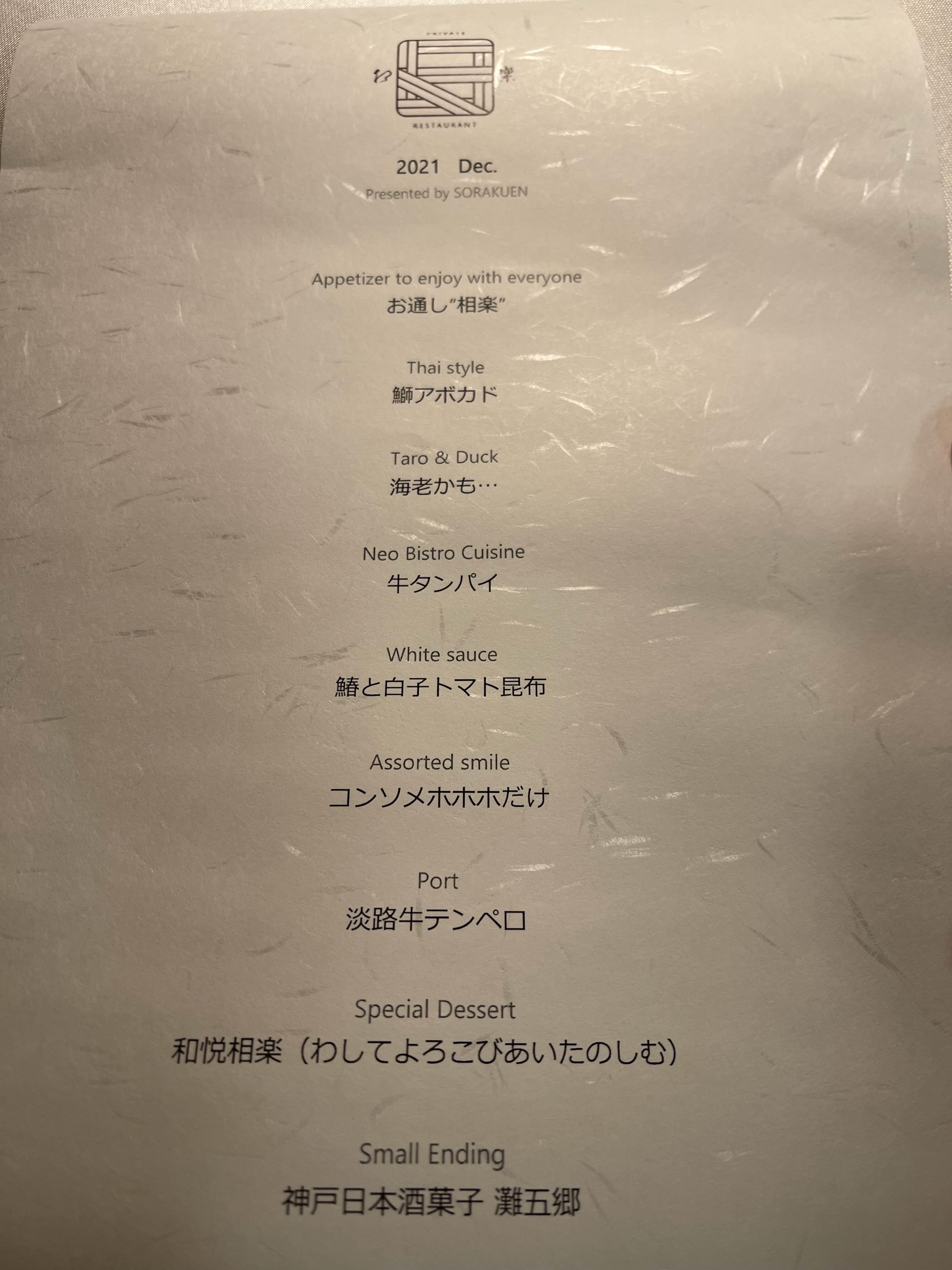 작년에도 들은 설명인데 항상 그 계절에 맛있는 재료를 사용해서 고베답게 아시아 요리 조리법을 많이 사용하는 다양한 요리들을 선보인다고 한다.