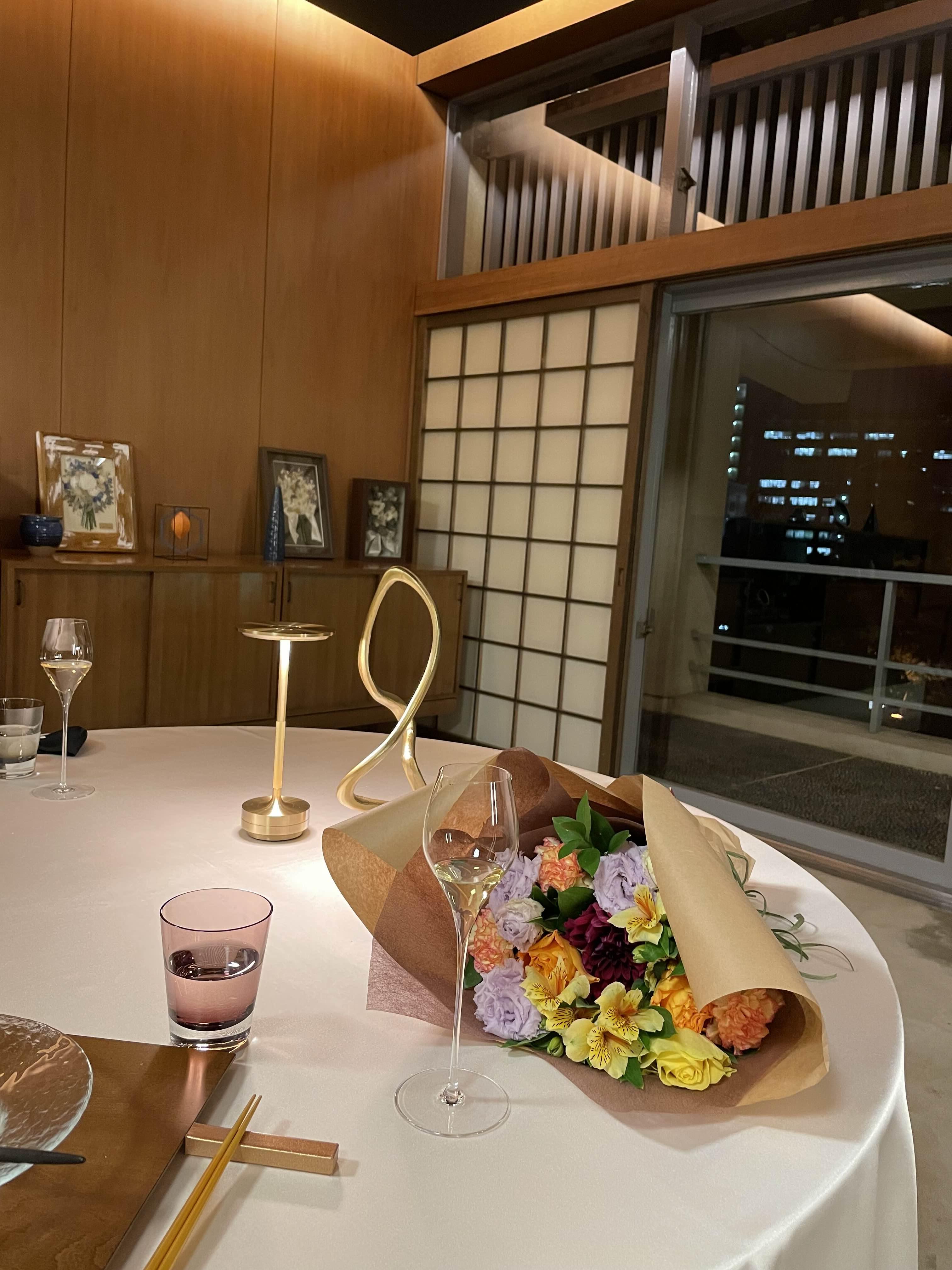 이렇게 코스 요리를 먹고 한 사람당 금액은 만 오천엔인데, 비싸긴 하지만... 일년에 한번 특별한 날이라면, 다른 곳 가본 데보다도 여기가 진짜진짜 좋다. 서비스 별 100개! 최고 !