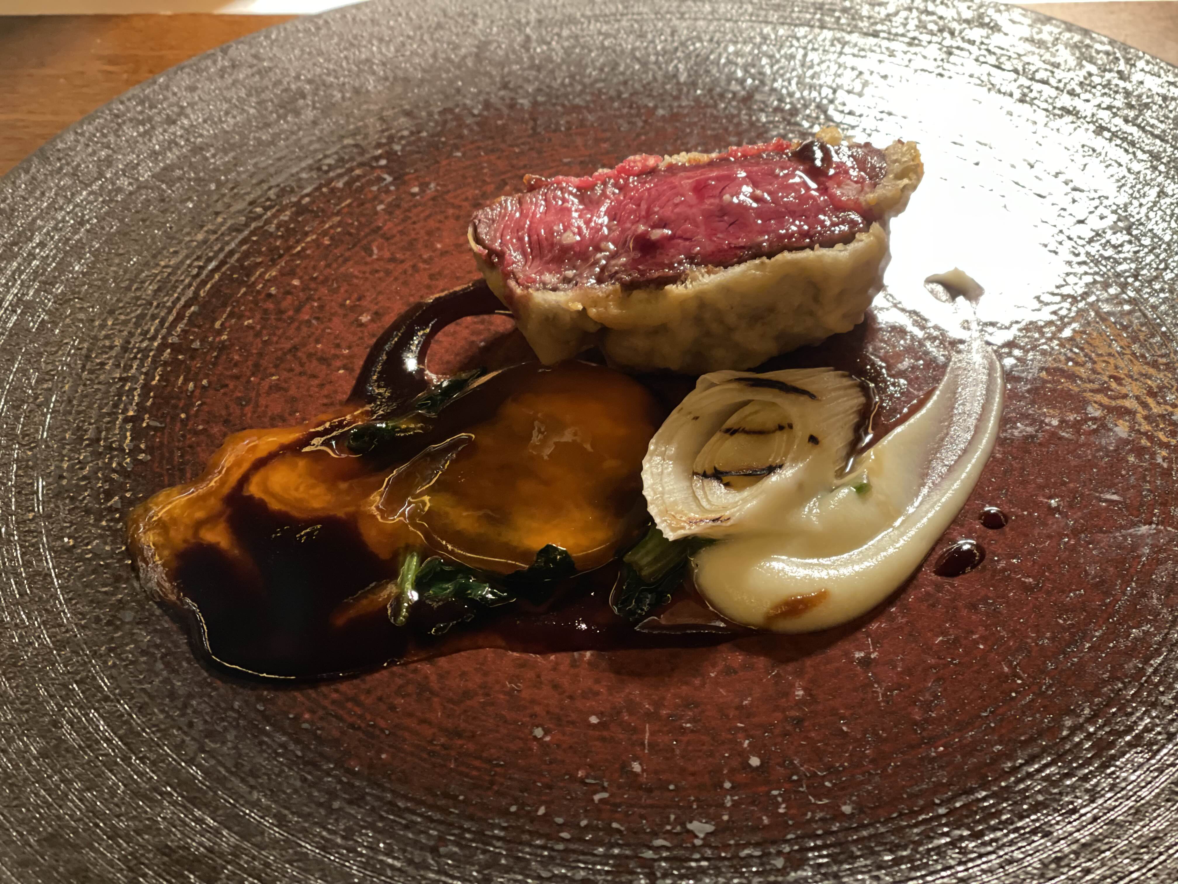 그리고나서 메인 디쉬로 아와지소고기를 사용한 스테이크가 나왔다.