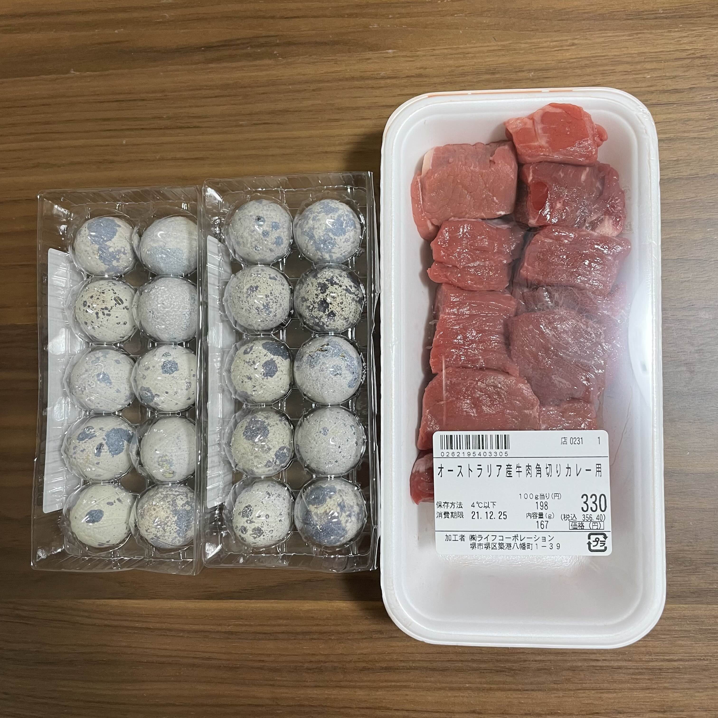 소고기 장조림! 메추리알은 20개 준비했고, 장조림용 소고기가 따로 없어서 그냥 슈퍼에서 카레용 소고기를 조금 샀다.