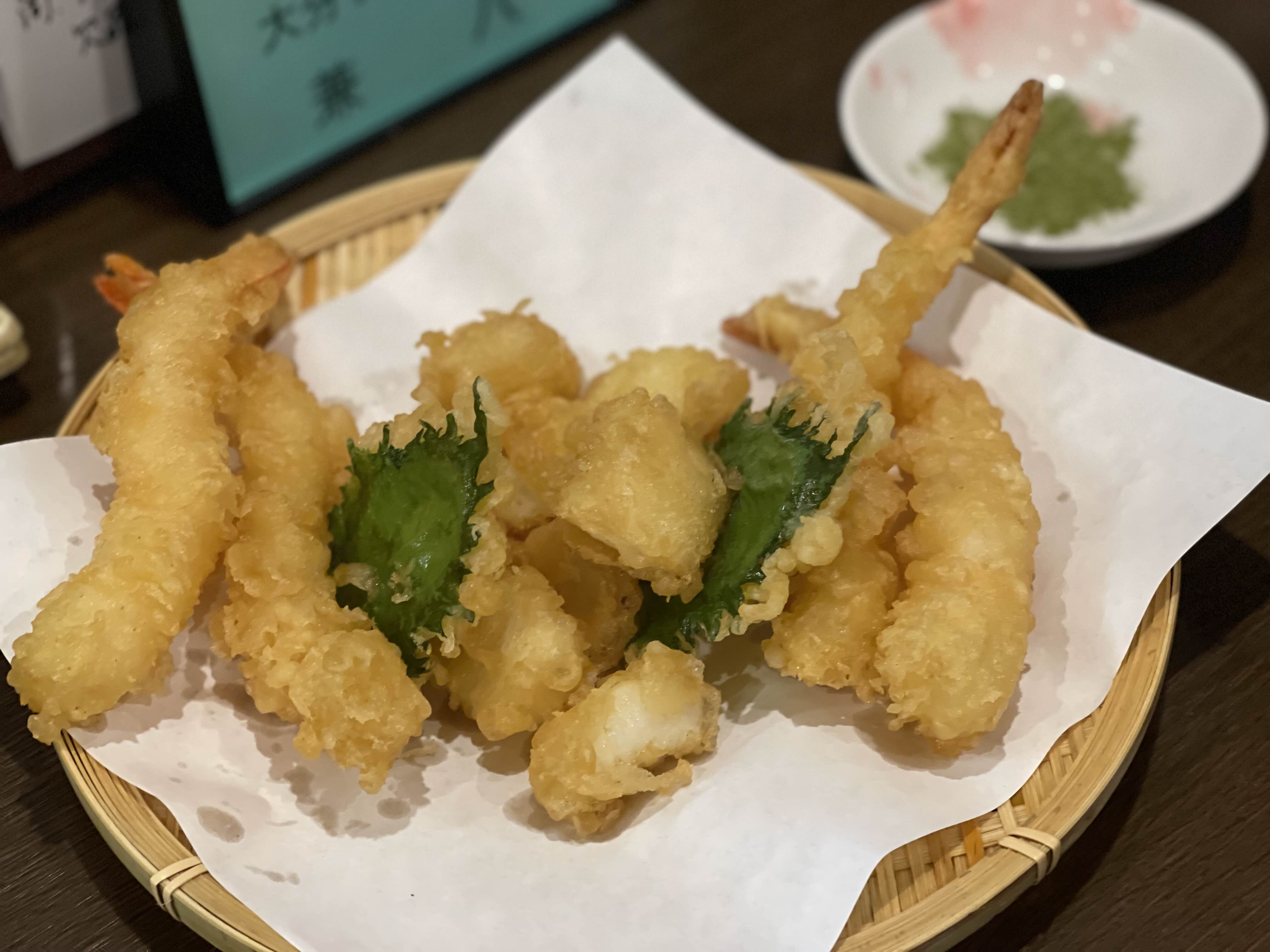 오이타가 표고버섯 しいたけ 도 유명하다고 해서 표고버섯 구이도 시키고 해산물 먹으려고 해산물 튀김도 시켰다.