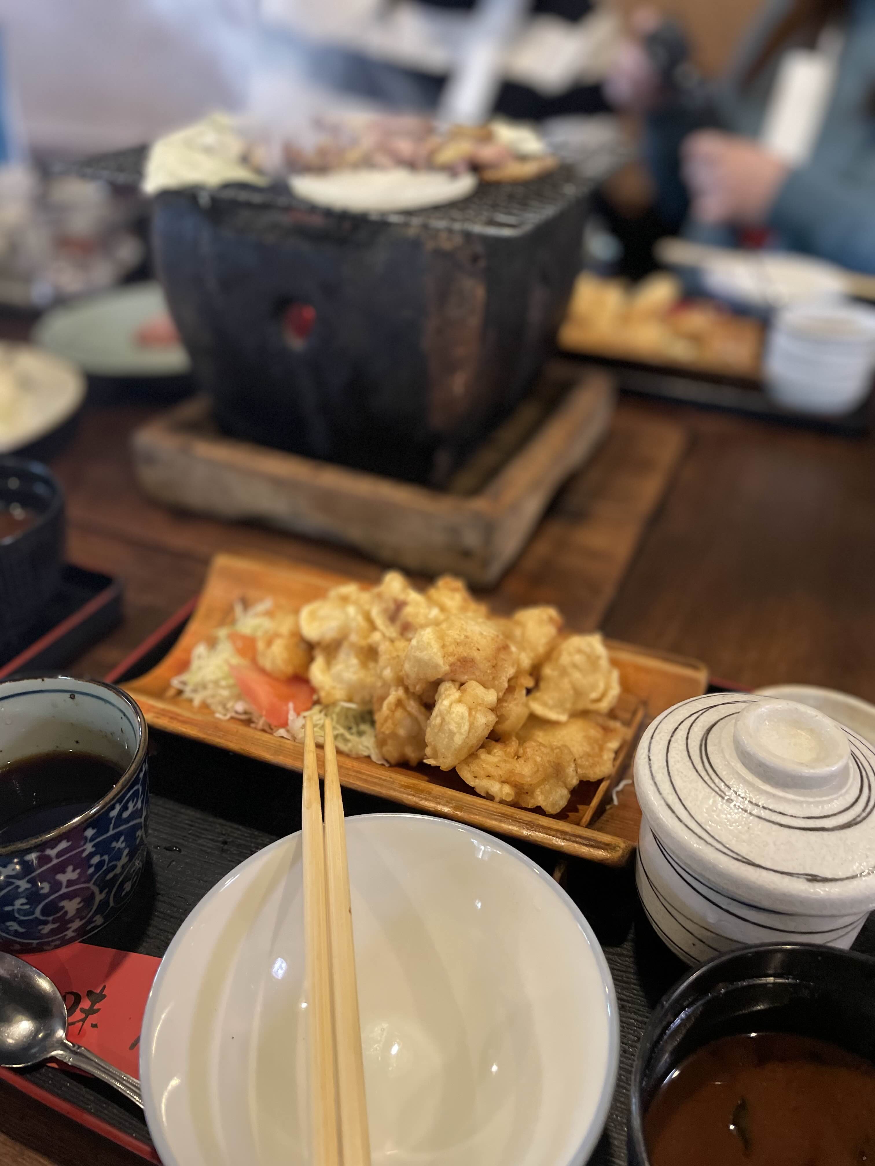 벳부는 맛있는 음식이 정말 많지만 그 중에서도 유명한 지도리 (地鶏 일본의 토종닭 요리)로 만든 스미비야키 (炭火焼 숯불요리) 랑 토리텐 (とり天 닭튀김) 을 먹으러 갔다.