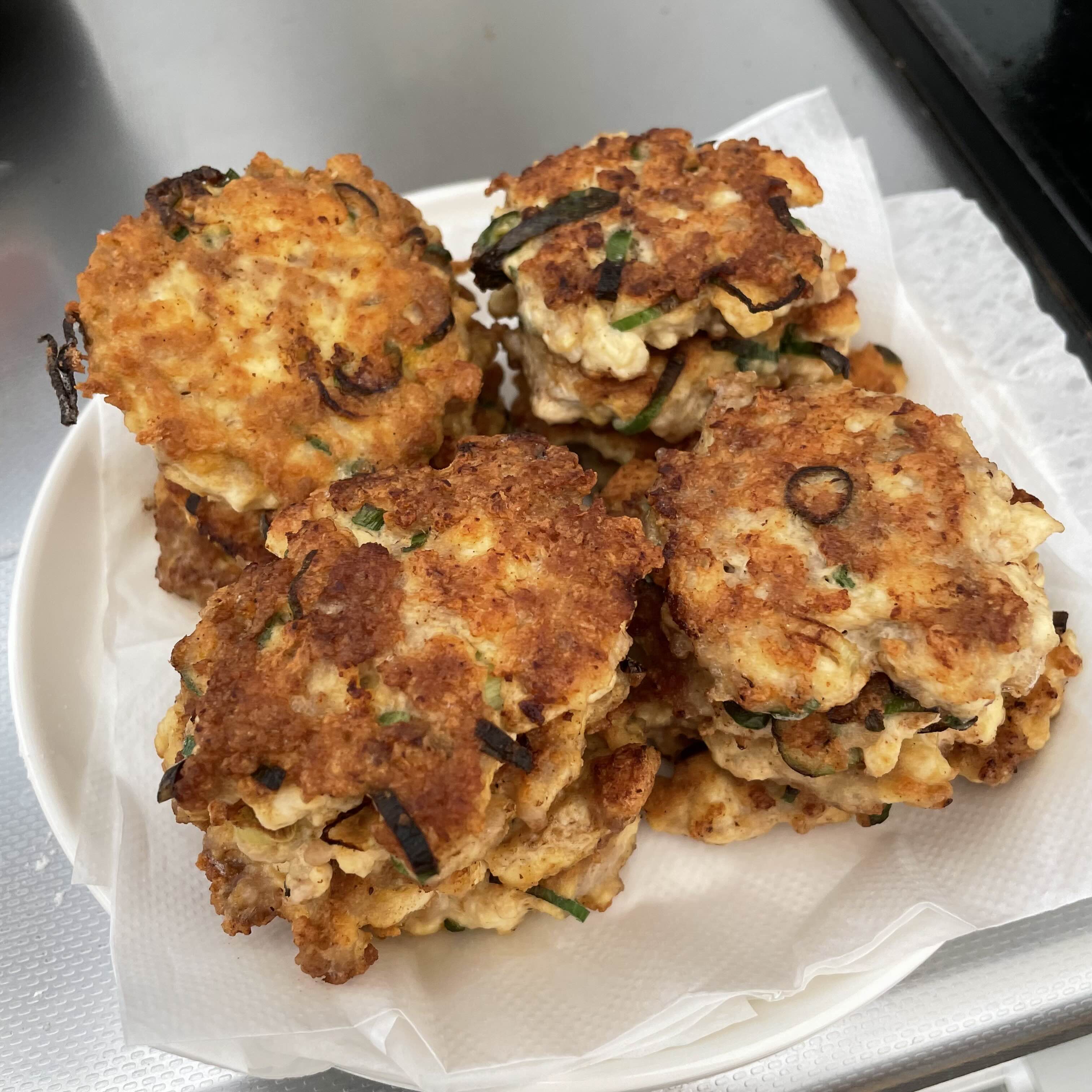 그냥 레시피 안보고 두부 물기 빼서 한모 넣고, 돼지고기 갈은 거랑 파만 넣고 계란, 소금 넣고 만들었다.