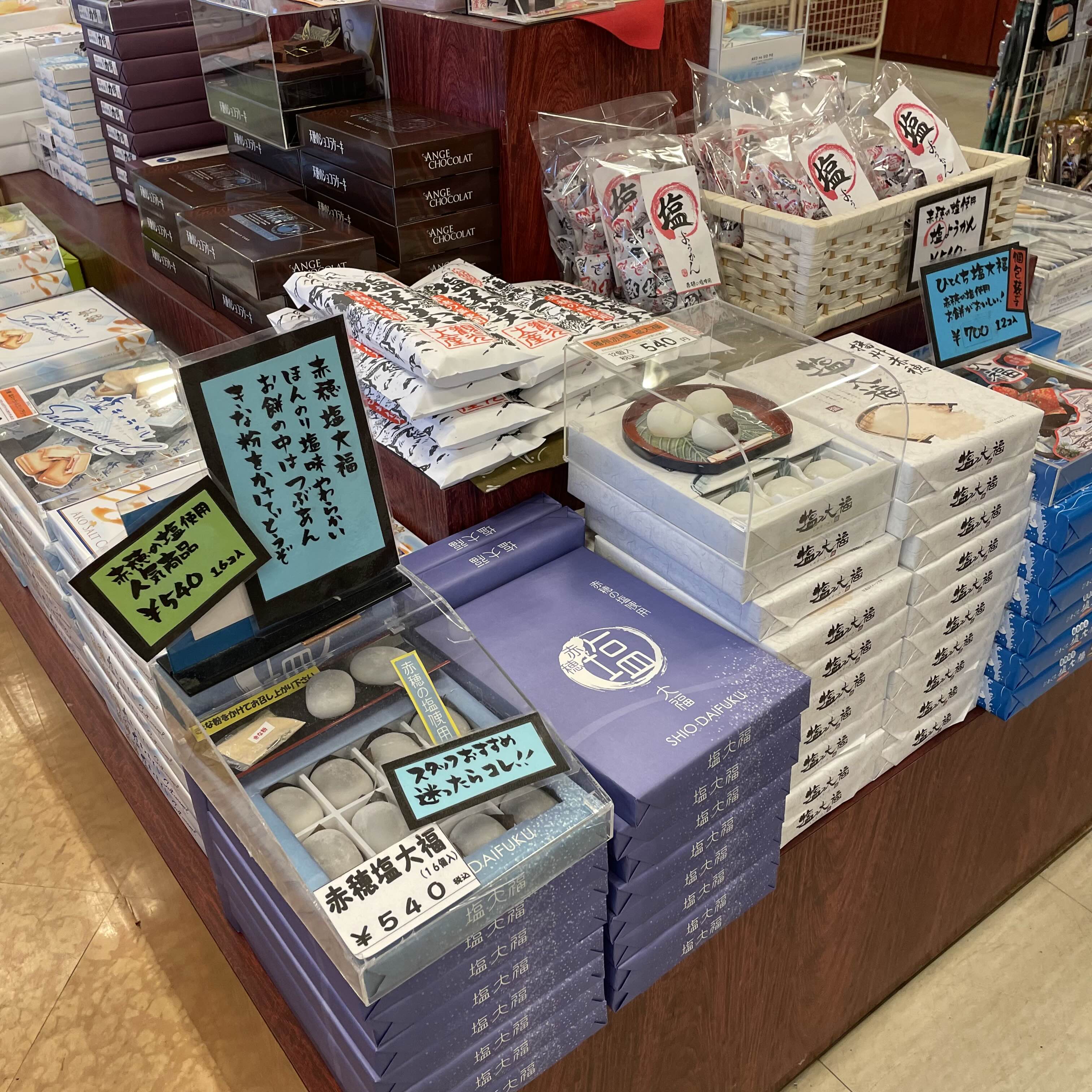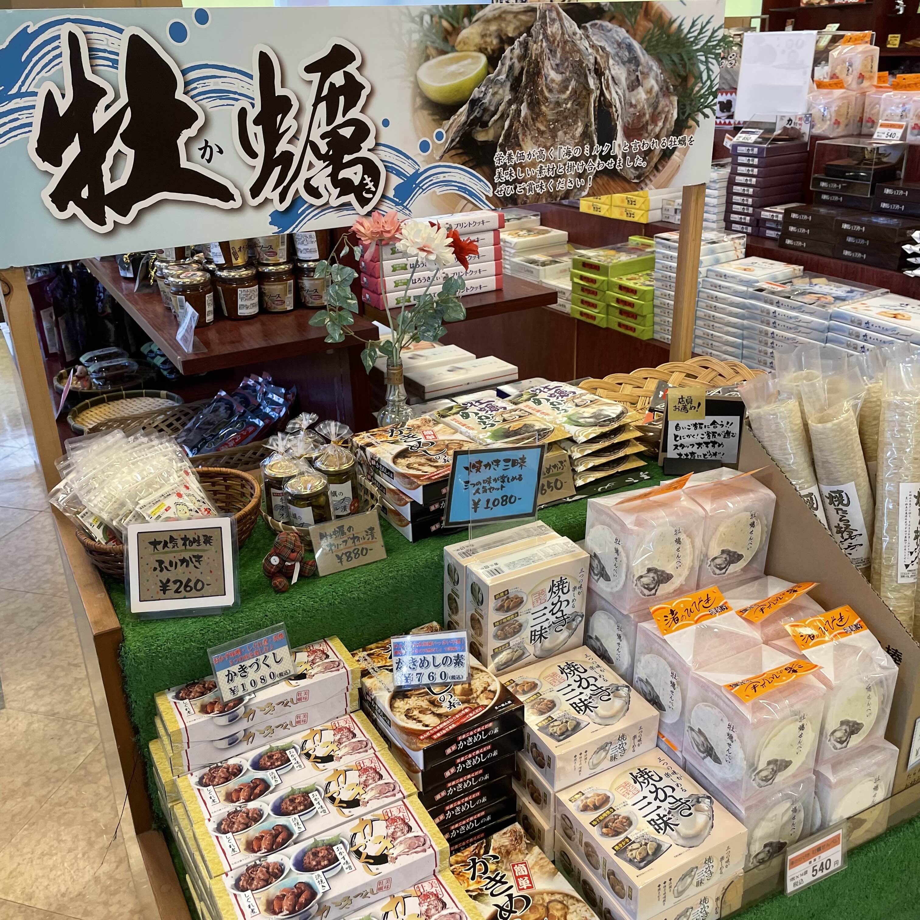 사람은 거의 없었지만 오카야마 특산물이나 히나세 굴 관련된 먹거리도 많이 있었다.