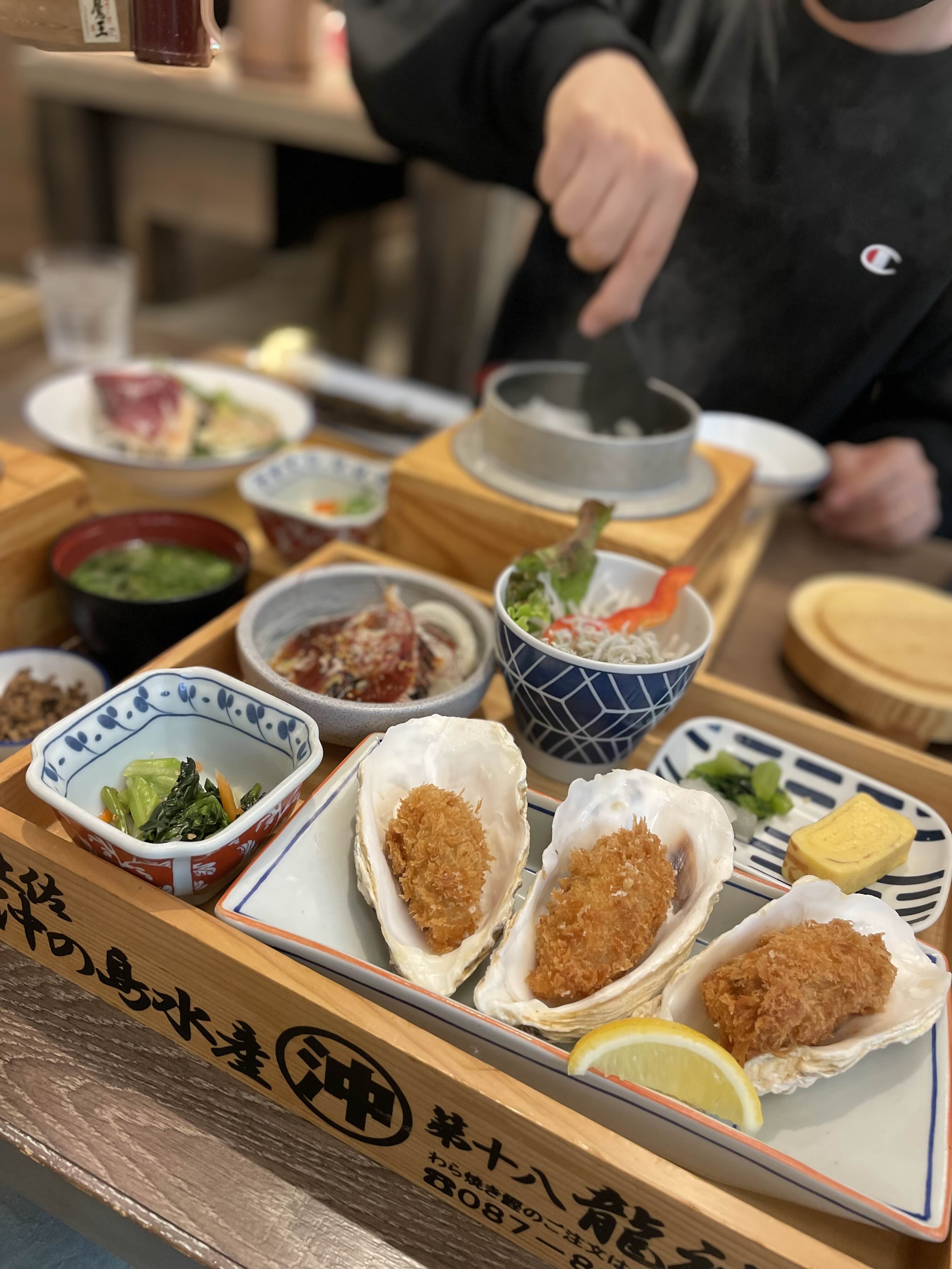 다 맛있어 보여서 뭐 먹을지 한참 고민하다가 굴 튀김 먹고 싶어서 굴 튀김 정식을 시켰다.