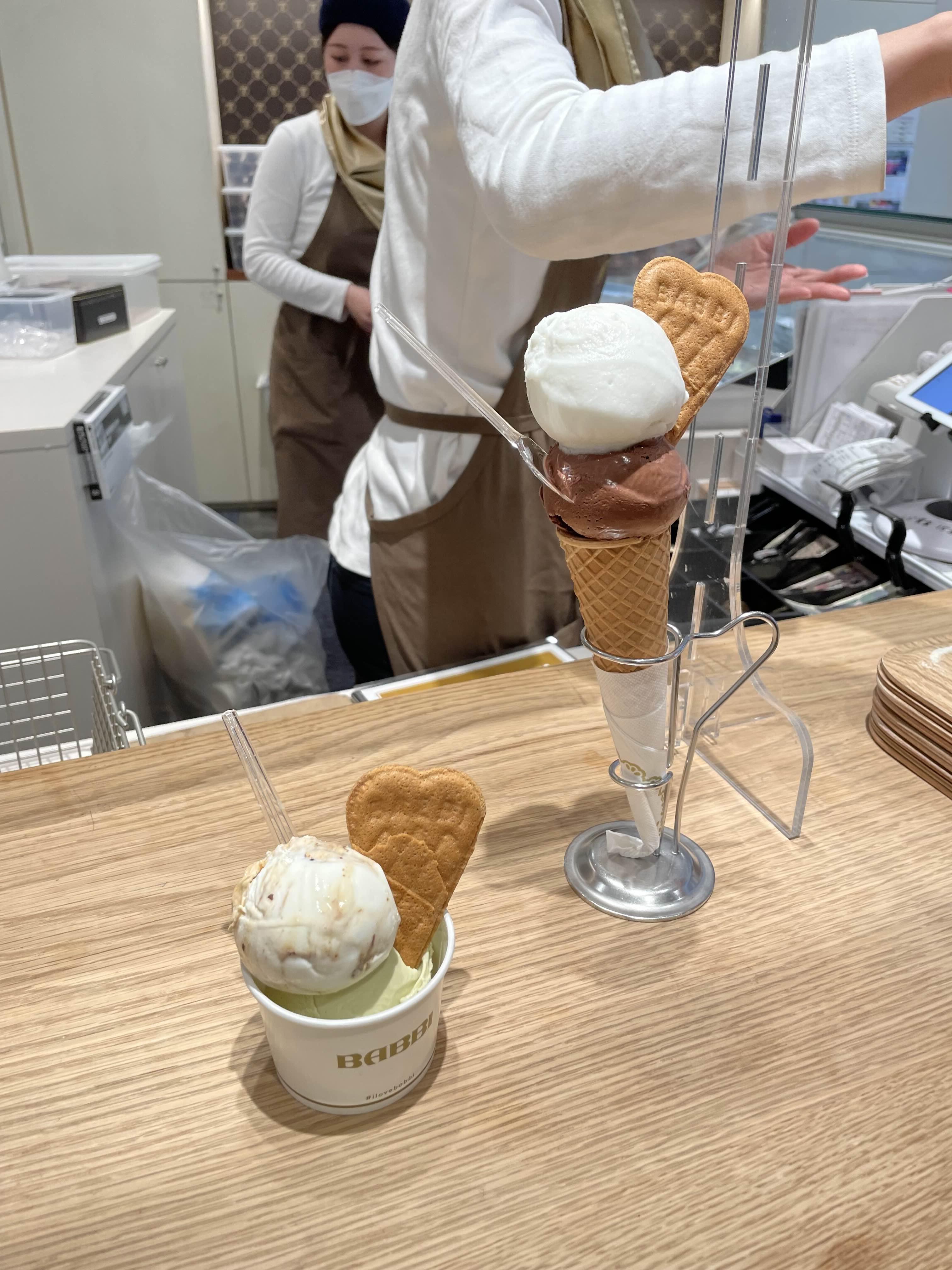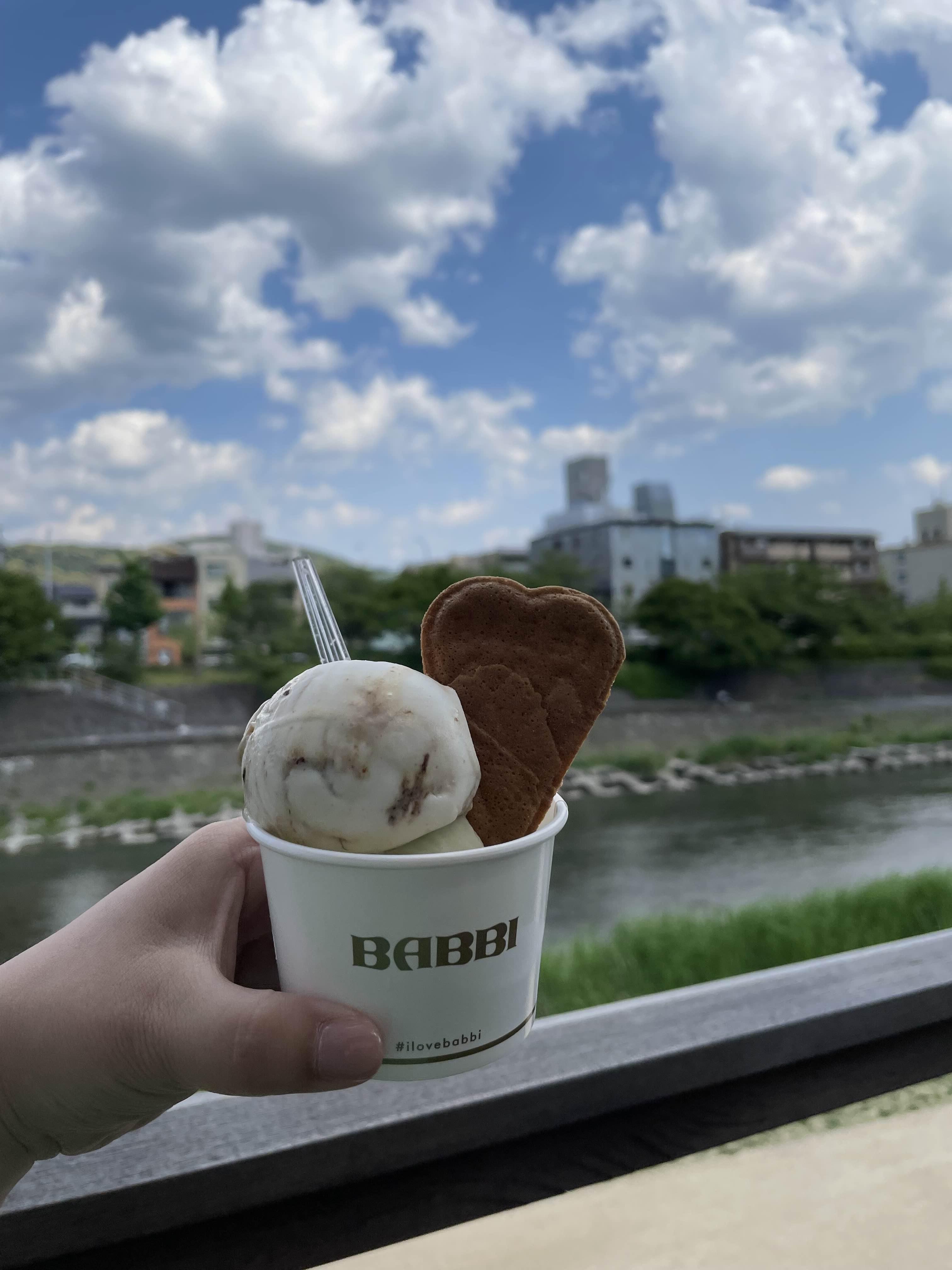 BABBI 라는 인기 있는 젤라또 가게 였는데 강가여서 그런지 젤라또 가격 외에도 테이블에 앉으려면 550엔을 내야 하는 규칙이 좀 신기했다.
