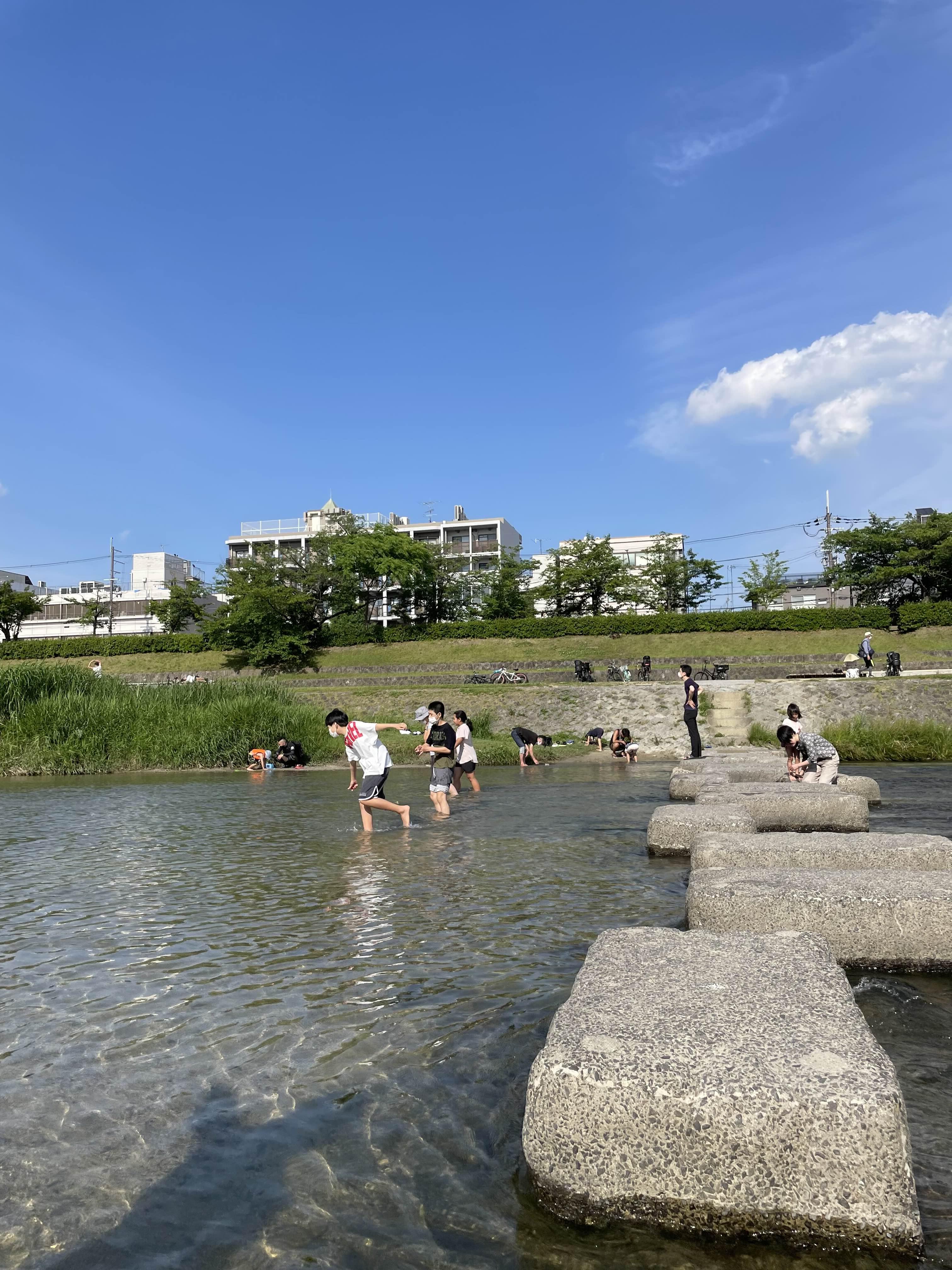 다양한 사람들이 자기 할일을 하고 있는 강가에서 엄청 힐링했다. 물놀이를 하는 애기들이나 가족들이 있었는데 우리도 한참 걷다가 끝 쪽에서 징검다리 飛石 있길래 거기서 물에 들어갔다.