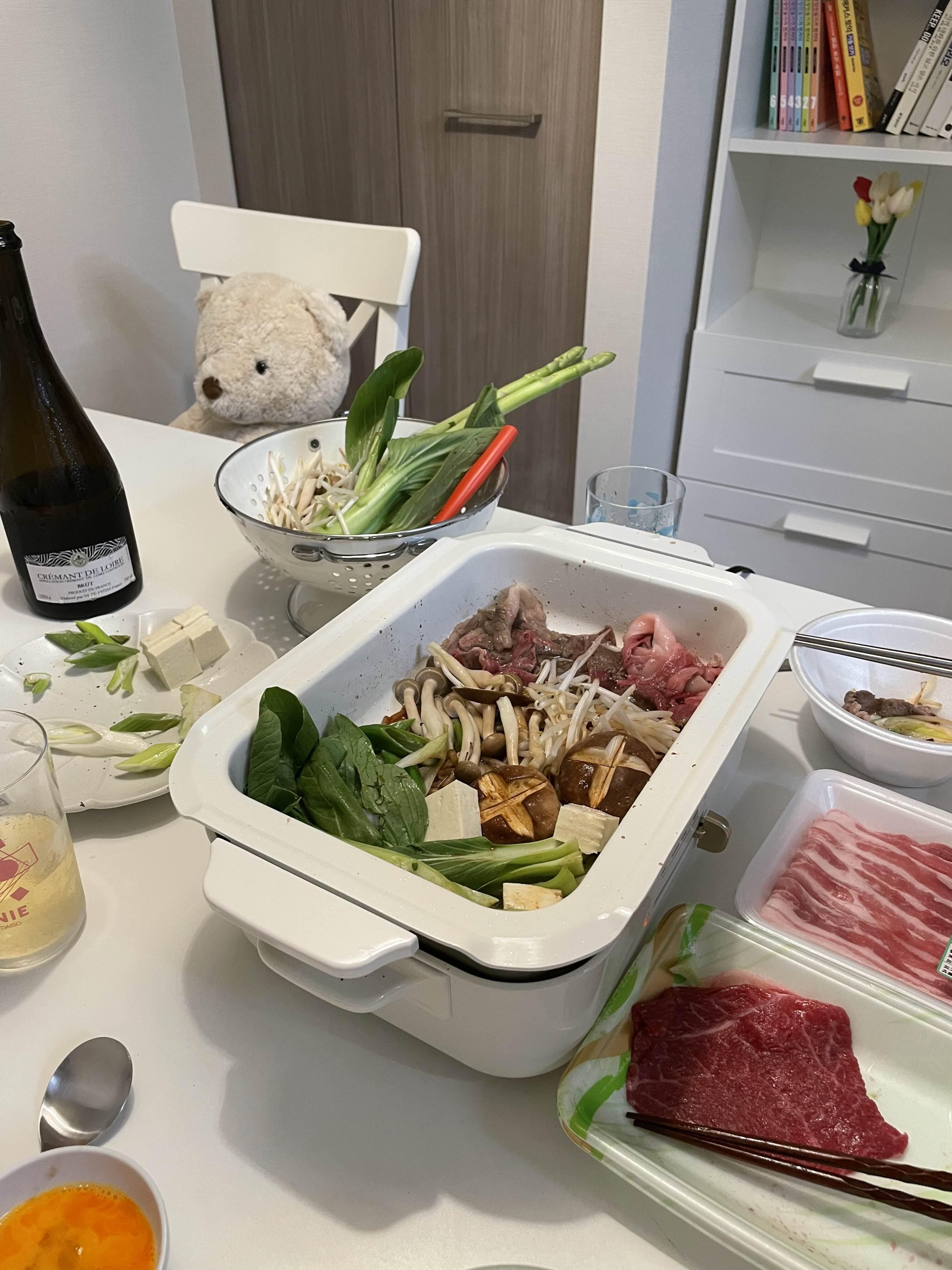 한국 물가가 많이 올라서 한국 보다 저렴하다면서 언니가 고기랑 야채랑 많이 사왔다. 간장이랑 설탕 소스로 스키야키 만들어 먹었는데 맛있었다. 고기가 맛있다 역시!