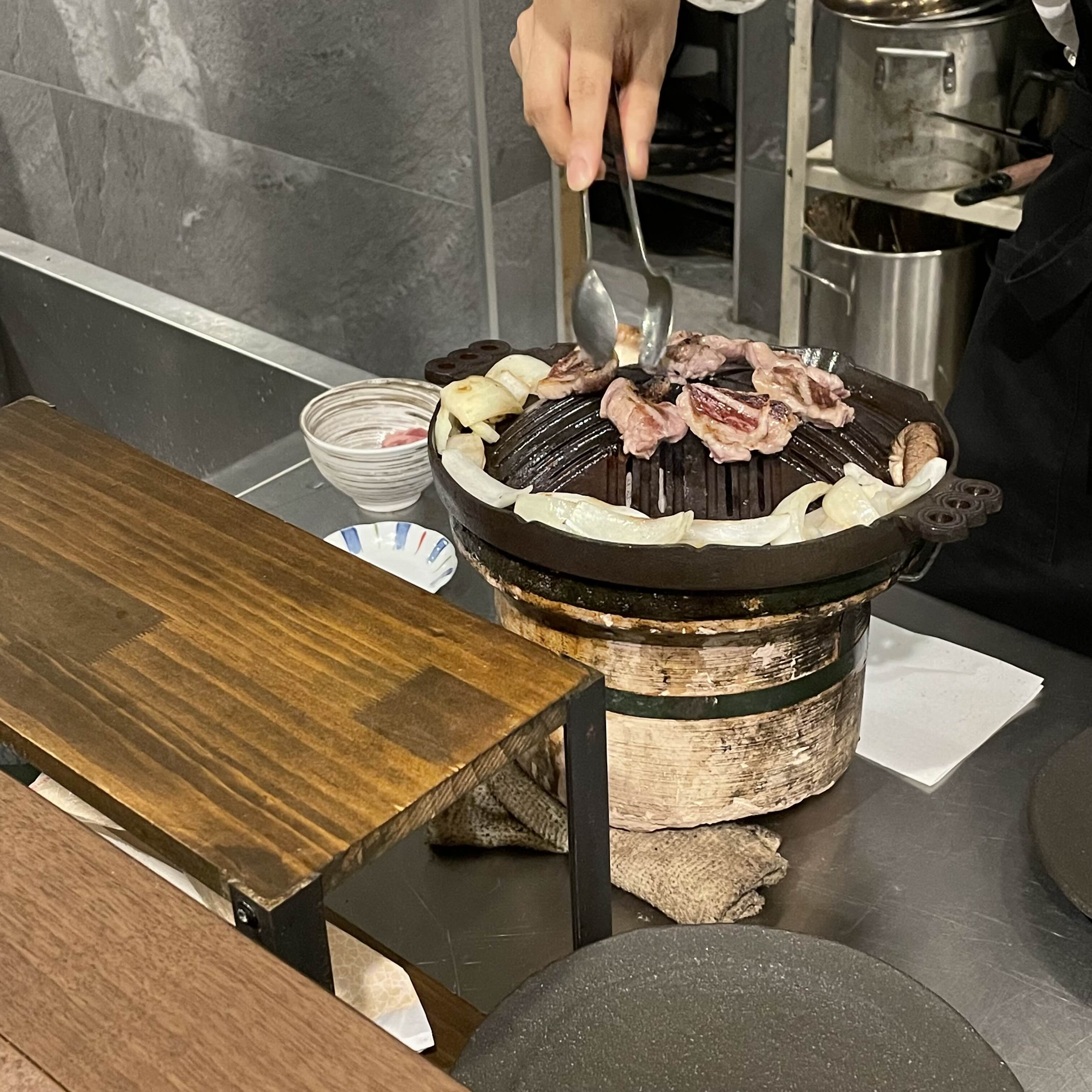 고기 구워주시는 멋진 모습을 잘 찍고 싶었는데 타이밍 맞추기가 어려웠다.