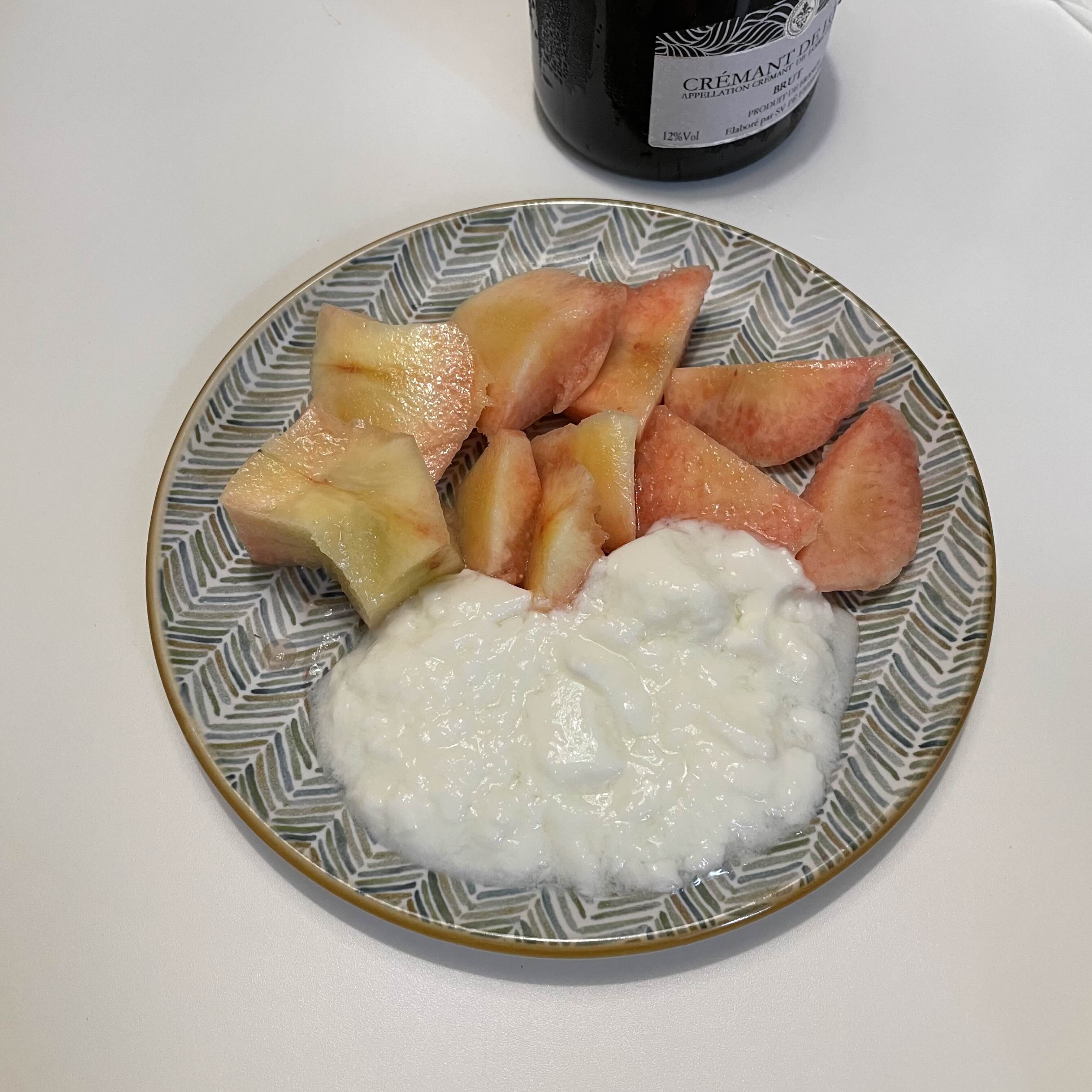 요즘 자주 과일을 사먹고 있는데 복숭아가 맛있어 보이길래 사와서 요거트랑 같이 먹었다.