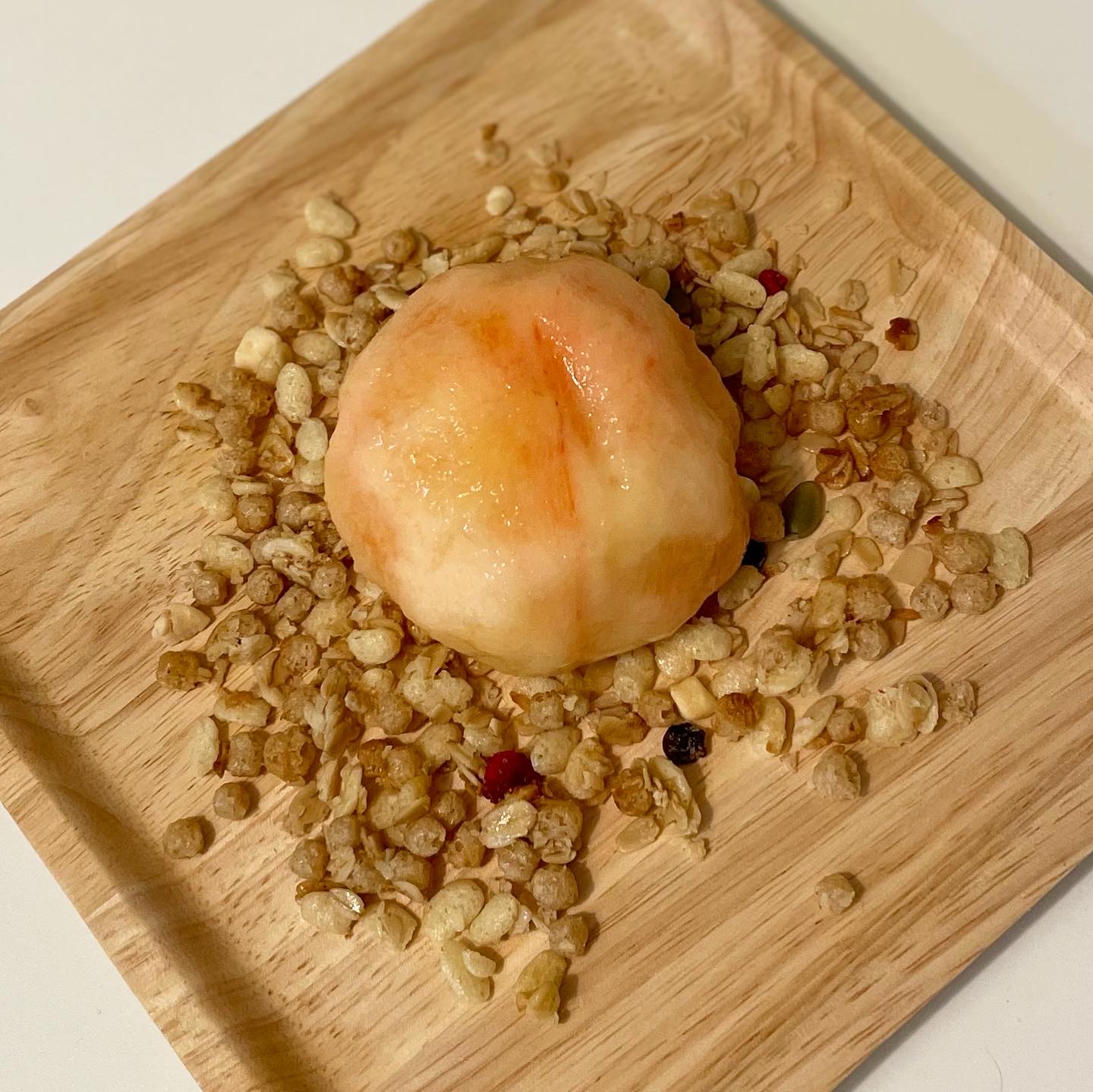 유튜브에서 만드는 법 보니 굉장히 간단해 보여서 그냥 복숭아 씨 빼고 그 안에 그릭 요거트 채우고 그래놀라랑 같이 뒀다.