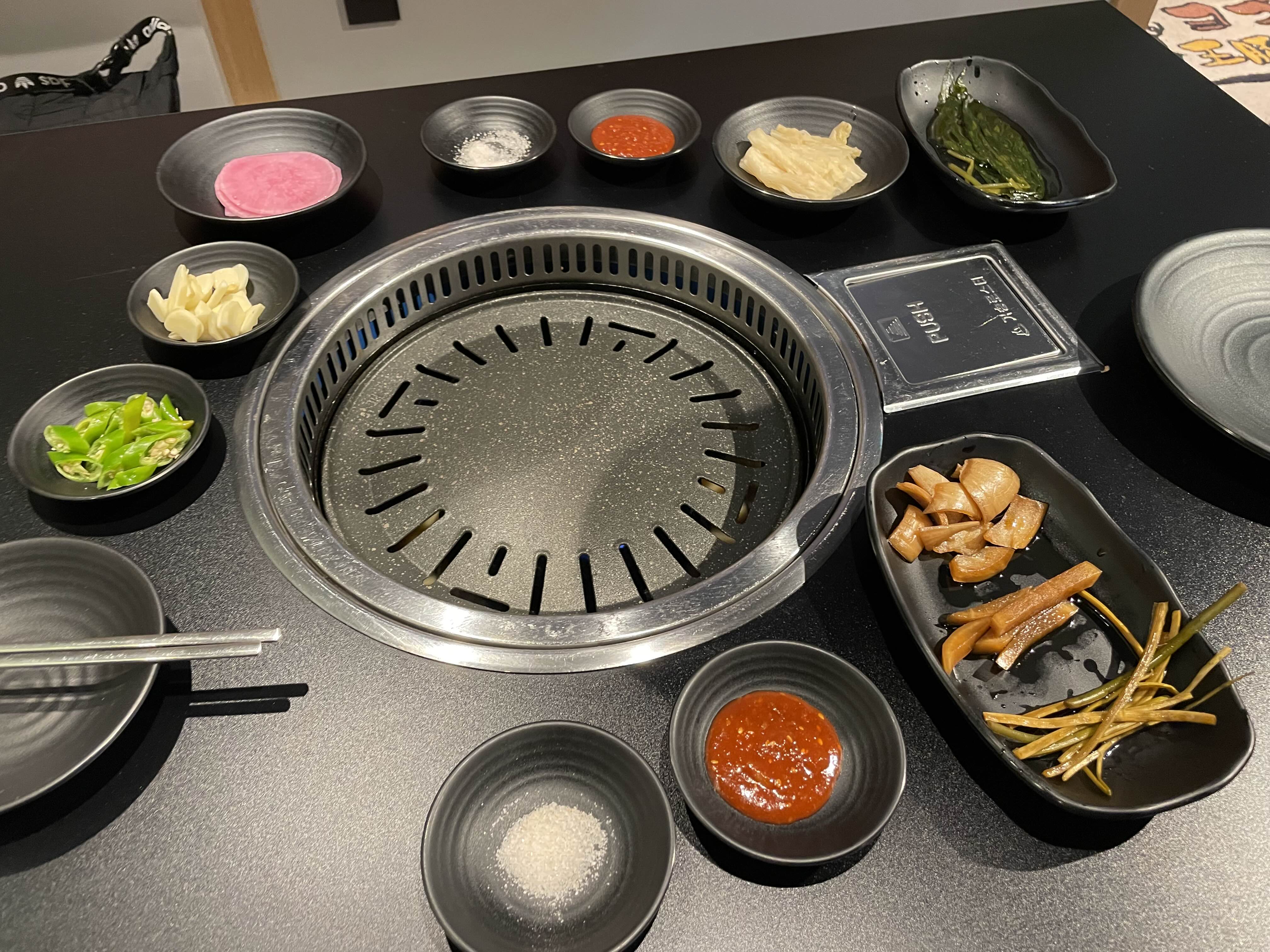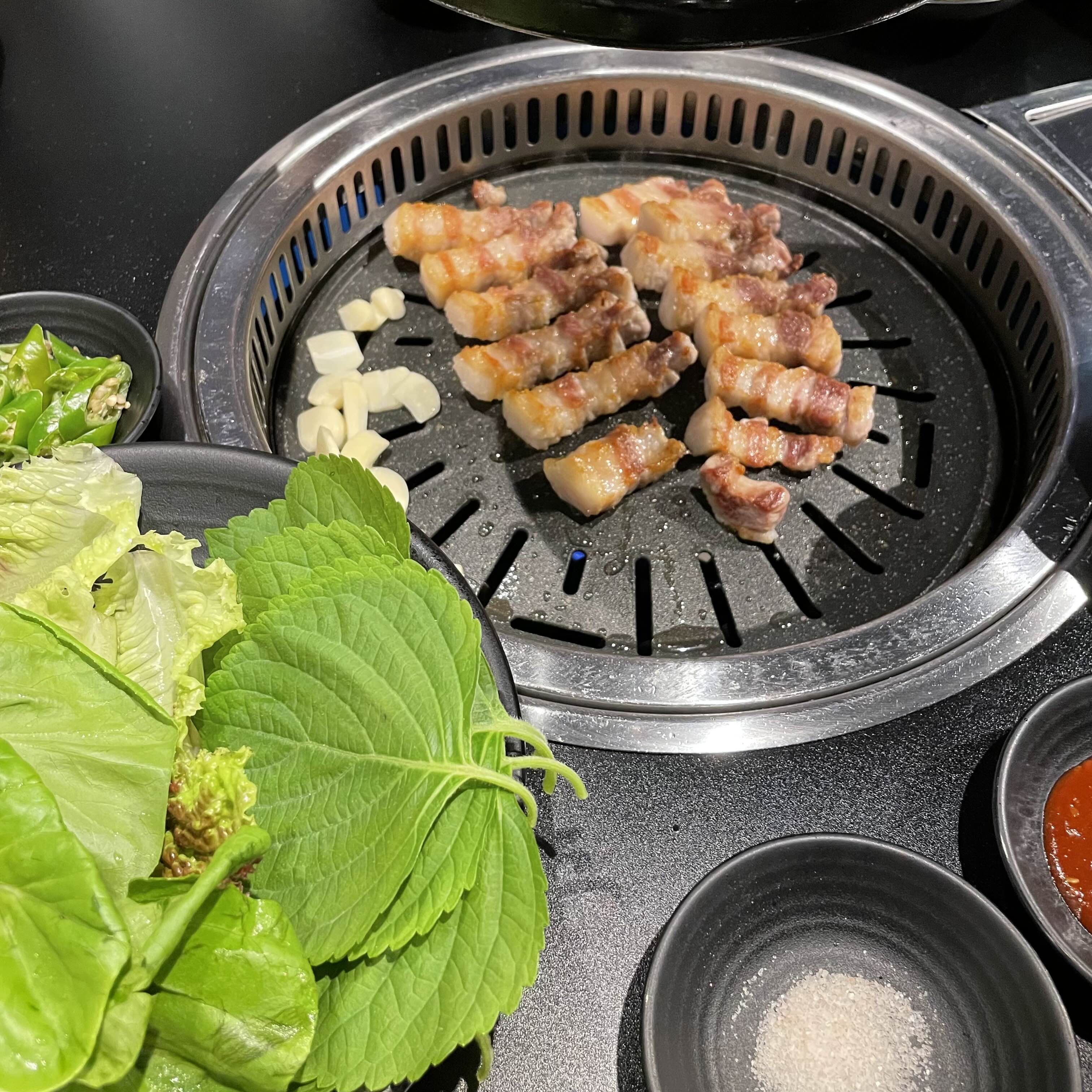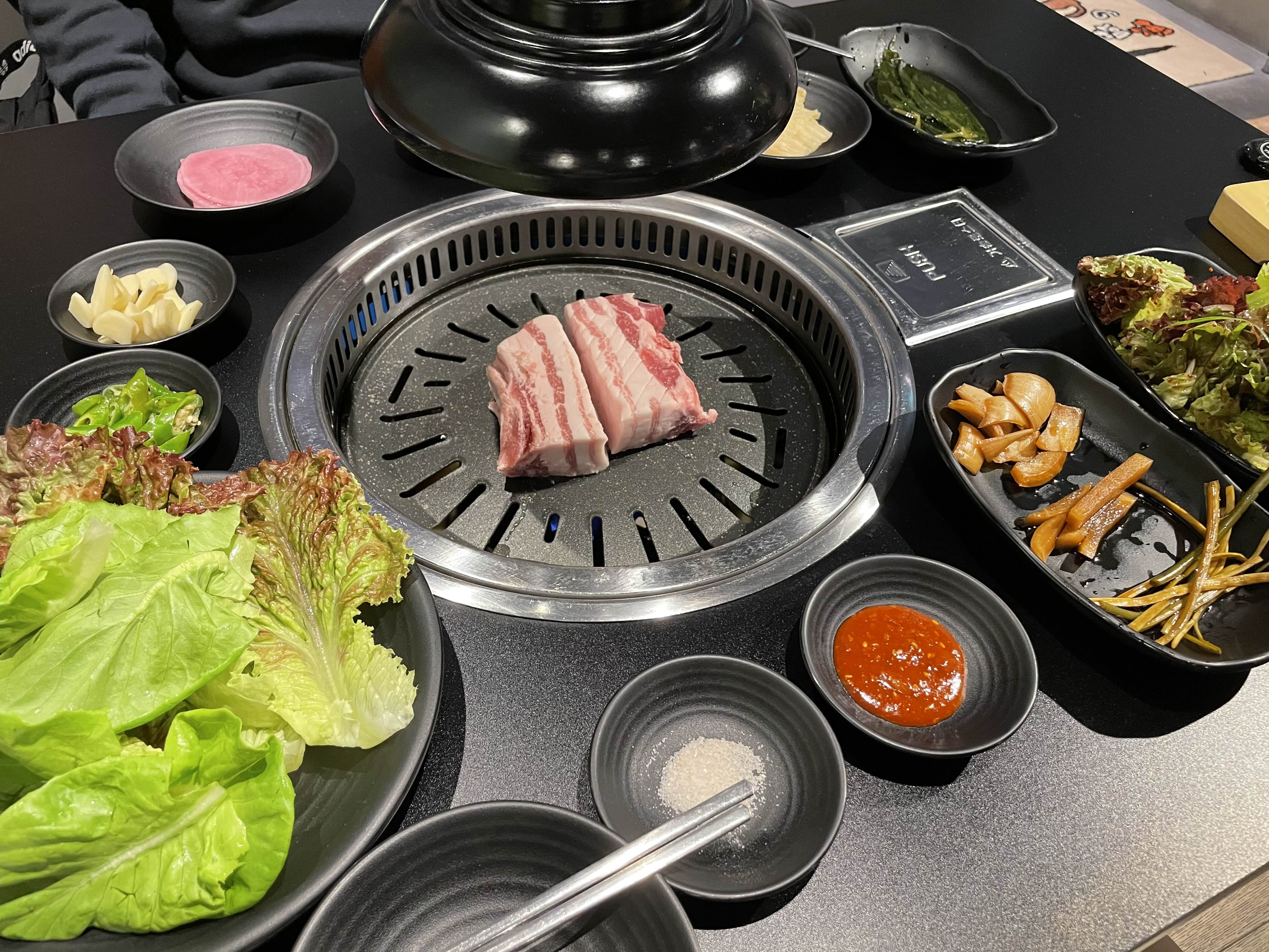 한국에서 삼겹살집 가면 이런 식당 있었는데 한국 느낌 뿜뿜이다.