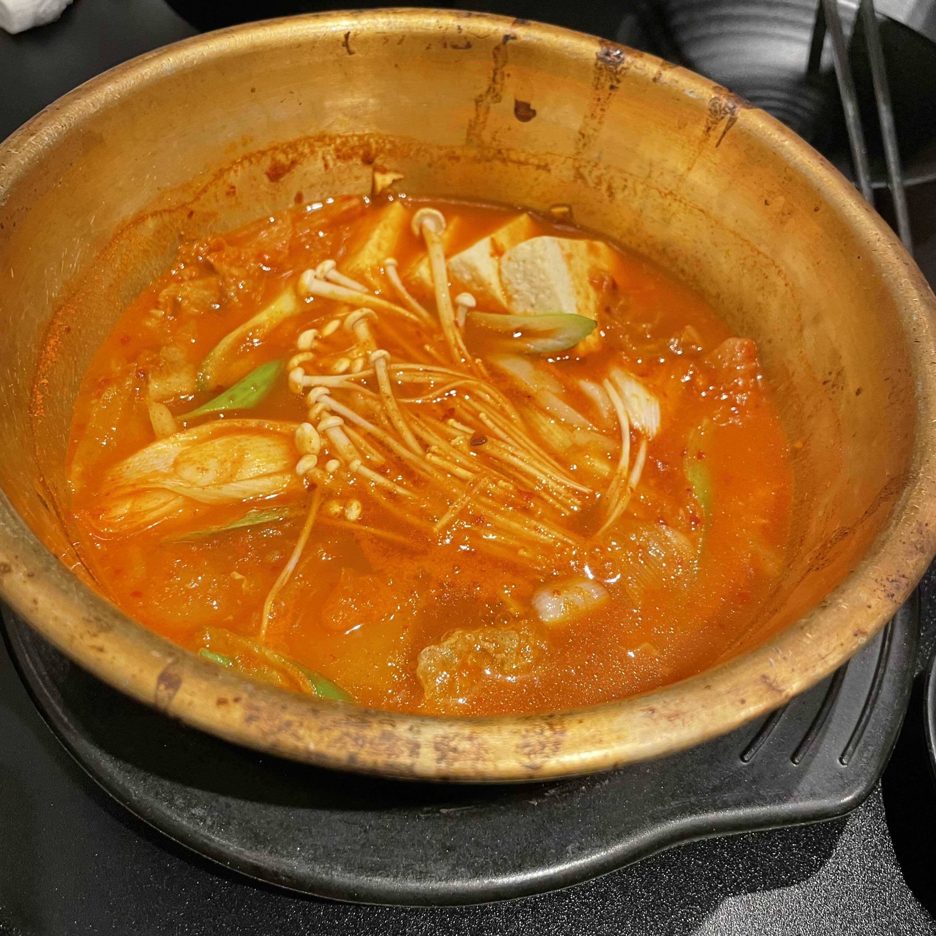 이건 맛이 없을 수가 없지~ 이러고 먹었는데 너무 달아서 실망했다. 고기랑 두부 들어간 맛있어보이는 김치찌개였는데 집에서 먹는 거보다 맛 없는 느낌...